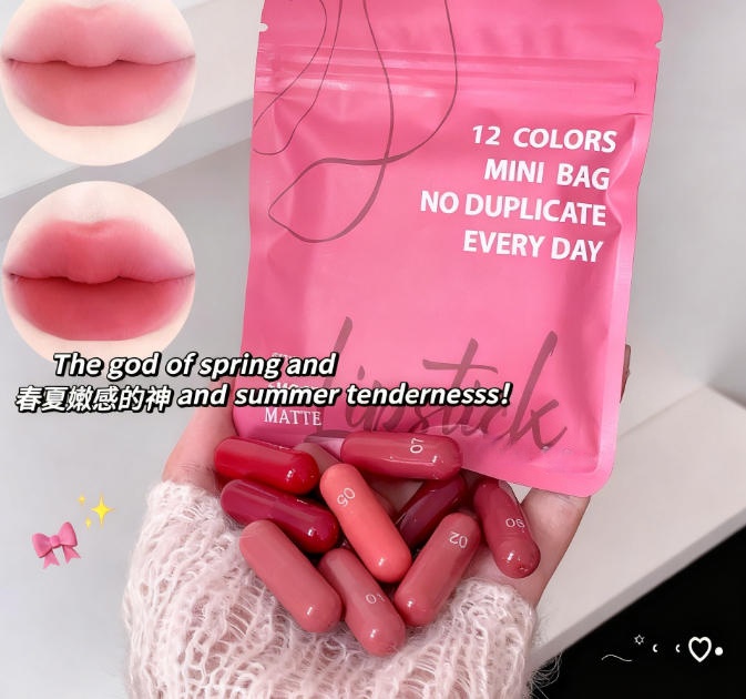 Capsule Lipstick Set 12-Color Long-Lasting, Transfer-Resistant Mini Matte Lipstick