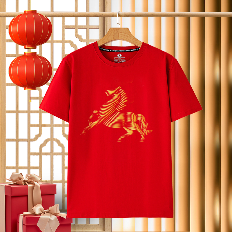 【220G 100%Cotton】SISI 2026 CNY New Year Short Sleeve T-shirt Oversize Woman Loose Women Unique OOTDS Horse Lives#2