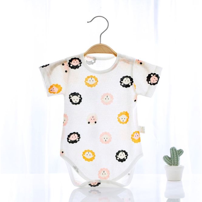 (0-9m) Newborn Baby Girl Boy Romper Baju Baby Unisex Eyelet Romper Baby Baju Lubang Clothing Short Sleeve Romper 0380
