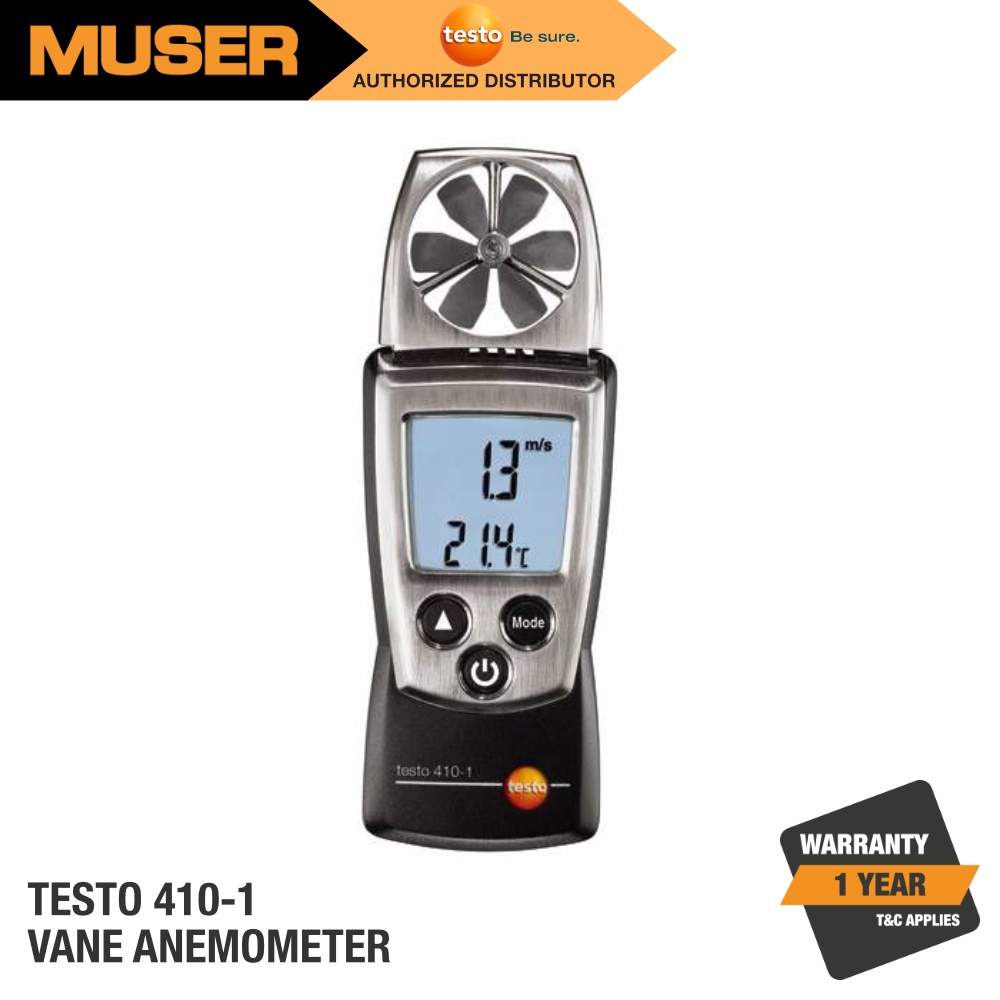 Testo 410-1 Vane Anemometer // 0.4 to 20 m/s Velocity // -10 to +50 °C Temperature