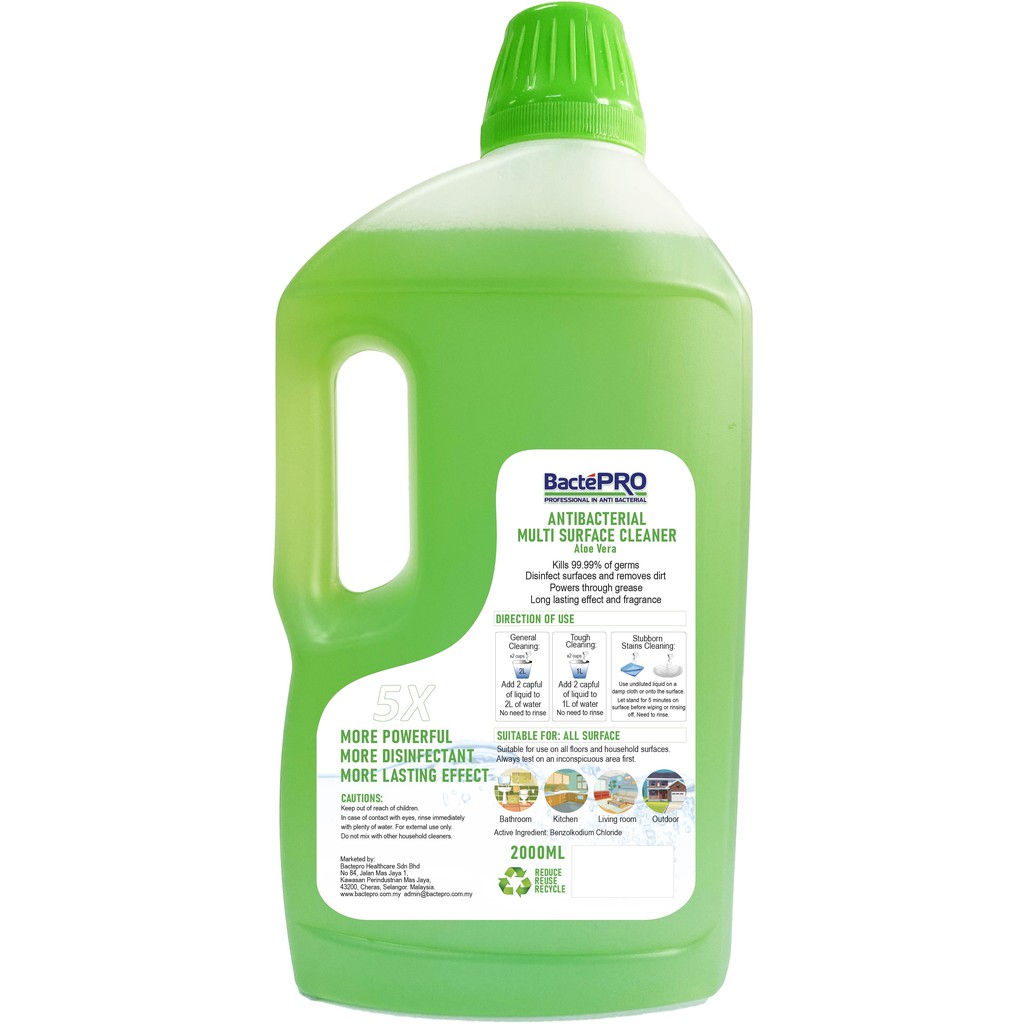 Bactepro Antibacterial Multi Surface Floor Cleaner Aloe Vera - 1500ML FREE 500ML Floor Cleaning Disinfectant Pencuci