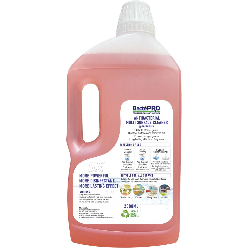 BactePRO Antibacterial Multi Surface Floor Cleaner - J'pan Sakura 1500ML Free 500ML Disinfectant House Cleaning 消毒水 洗地水