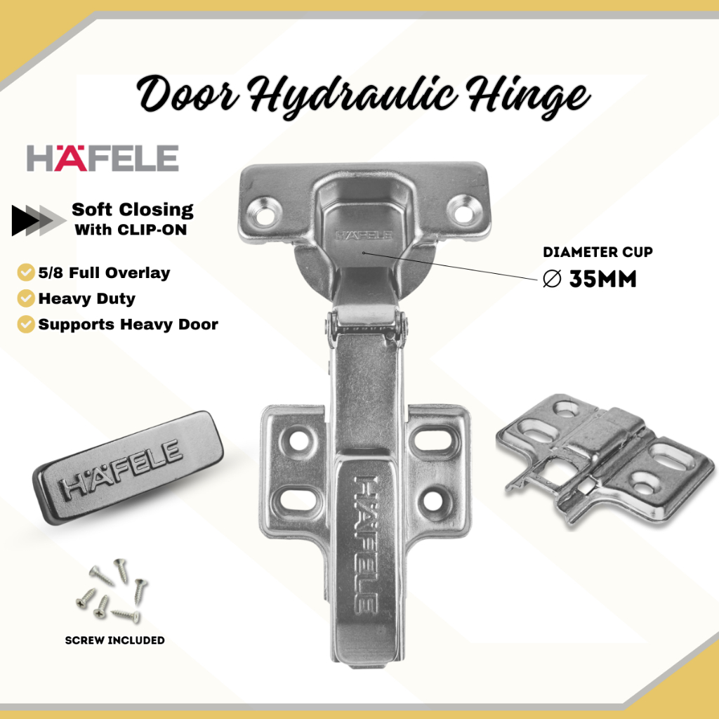 HAFELE Kitchen Cabinet Door Hinge Hydraulic Soft Close Full Overlay 5/8" Heavy Duty (with Screw) Engsel Kabinet