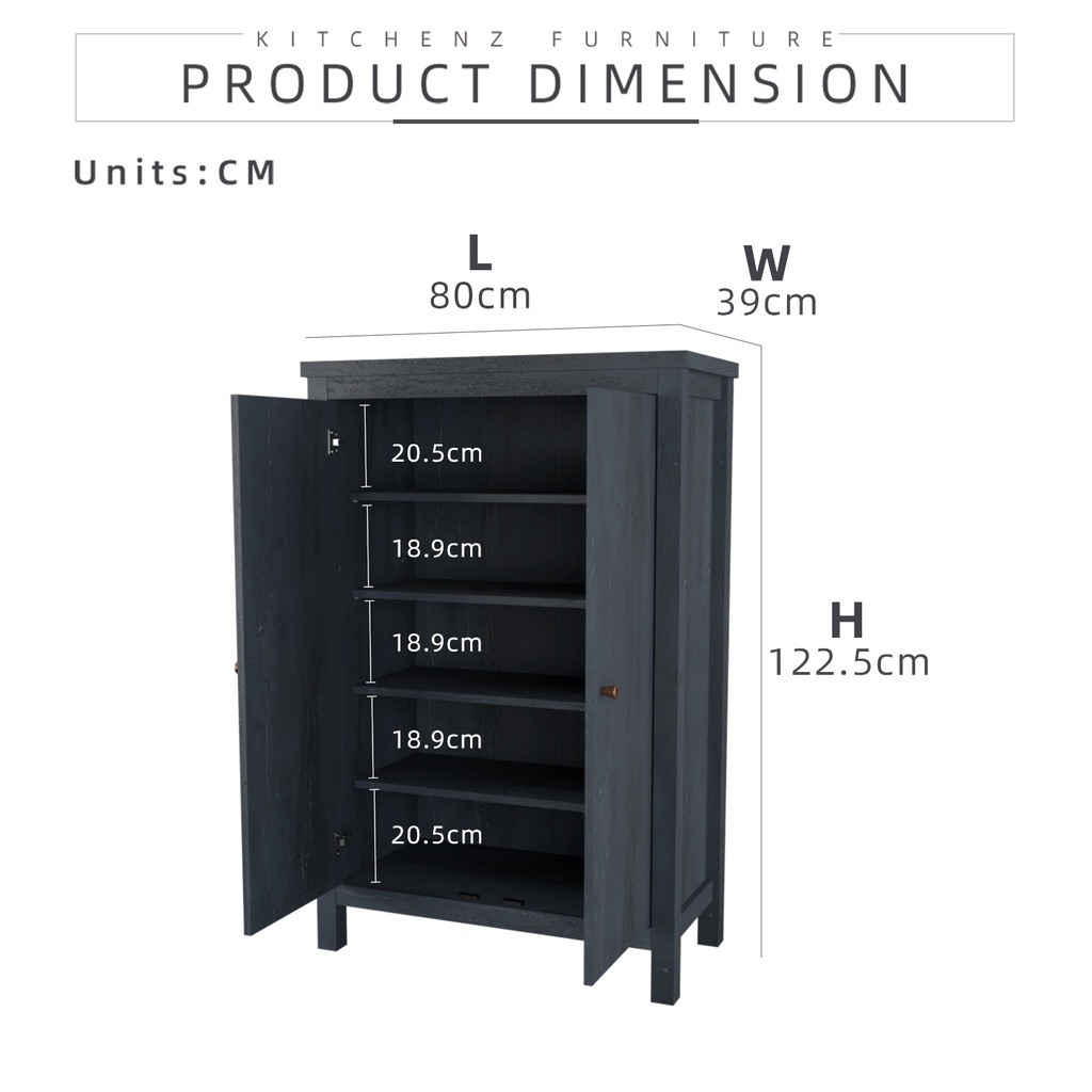 KitchenZ Akara Series 2.6Ft Shoe Cabinet With Door Kabinet Kasut Shoe Rack Cabinet Kasut Rak Kasut Bertutup - A1230-DG