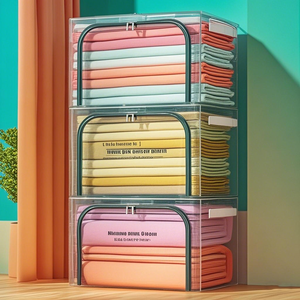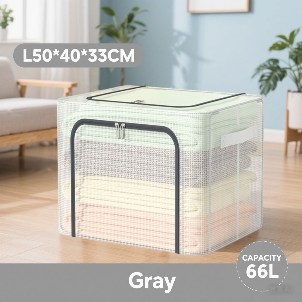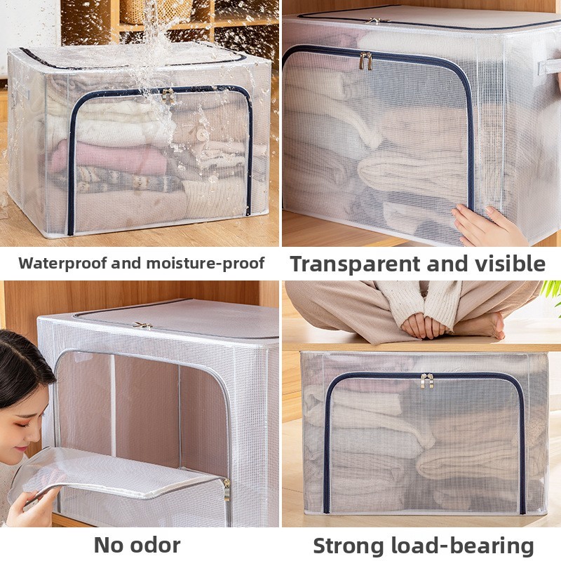 24L/66L/100L PVC Clothes Storage Box Transparent Foldable Storage Bins With Lids Foldable Big Toy Basket dust-proof Waterproof Storage Organizer Kotak Simpanan With Steel
