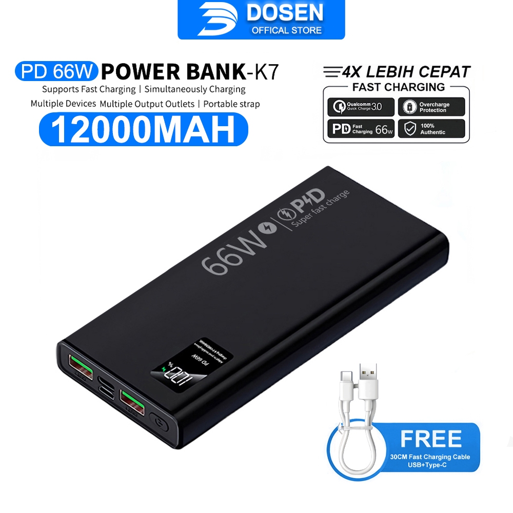 DOSEN Quality 66W Super Fast Charging Power Bank K7 Black/White QC 3.0Type-C Input USB (12000mAh-80000mah)