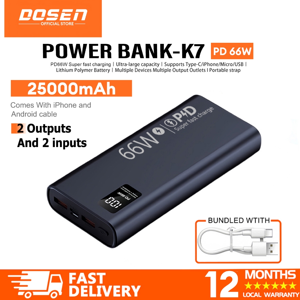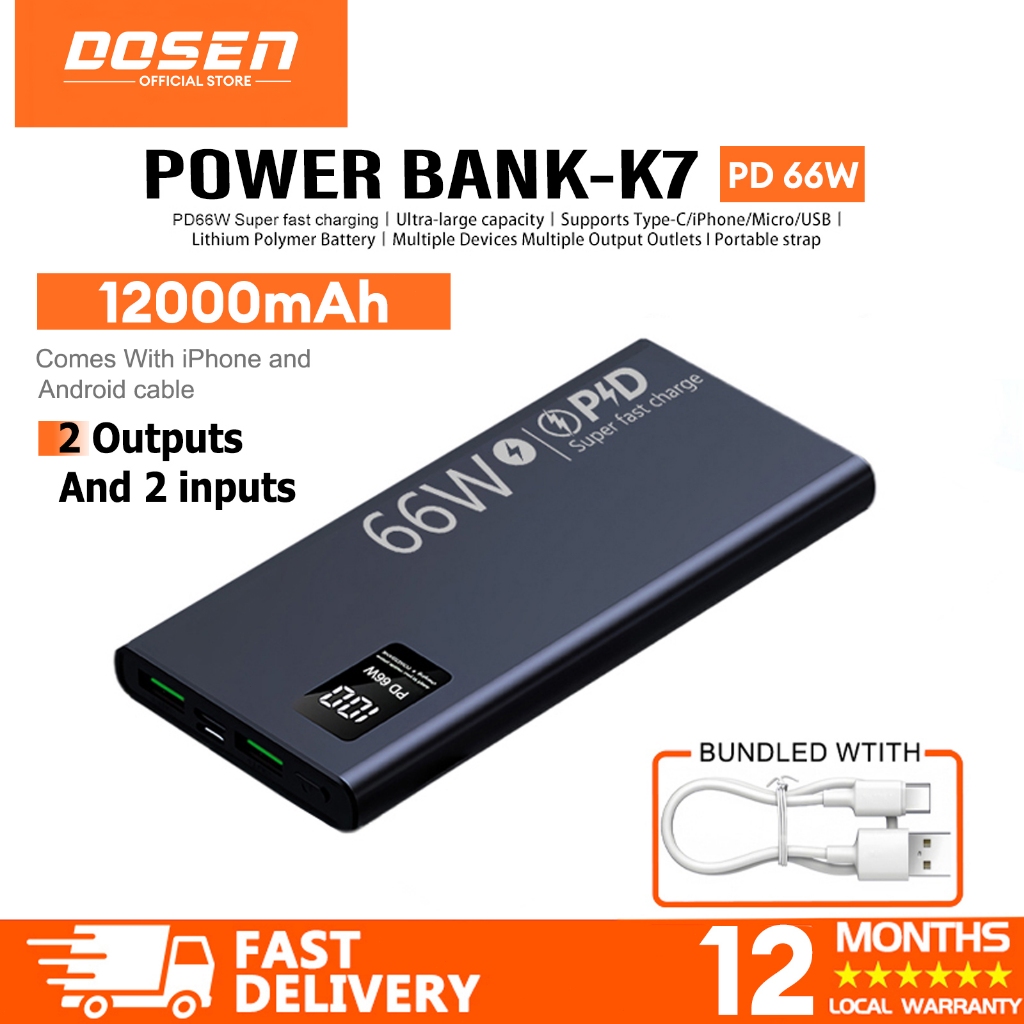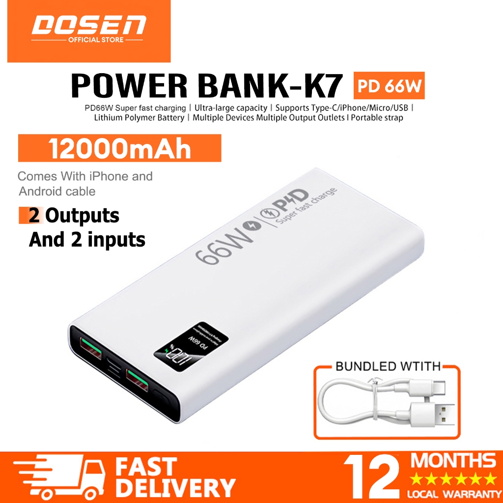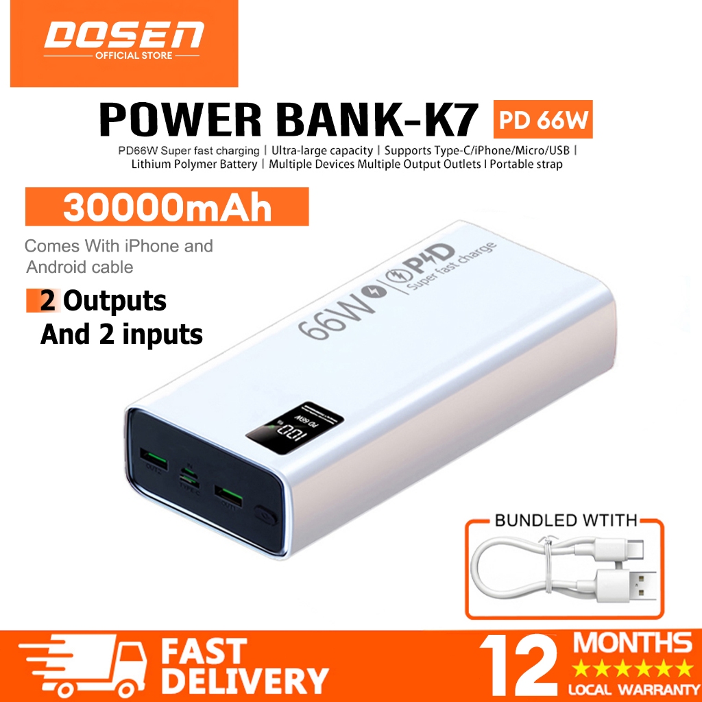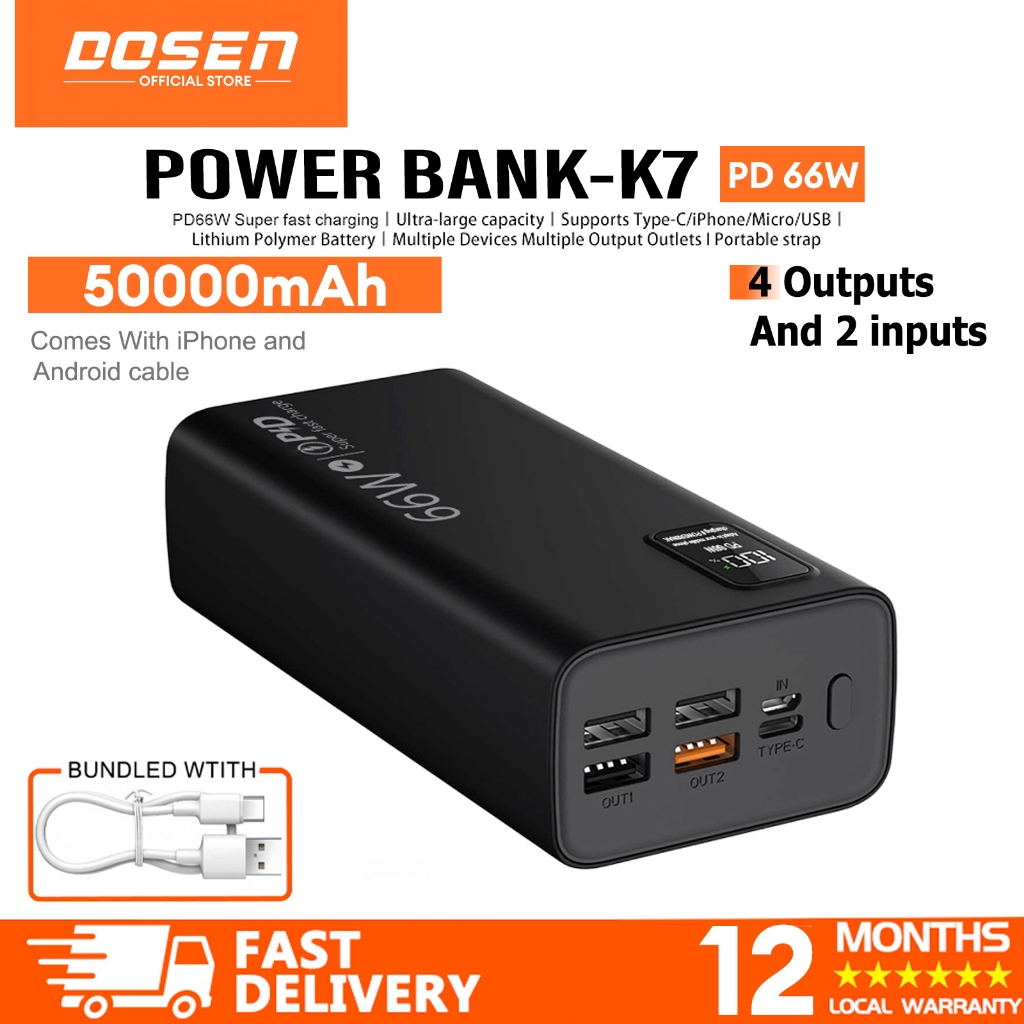 DOSEN Power Bank K7 Fast Charging Four USB Portable Digital Display Black White(PD66W/50000mAh 30000amAh 12000mAh)