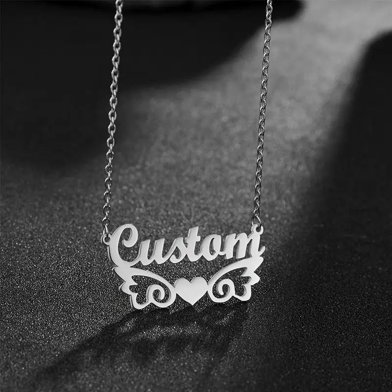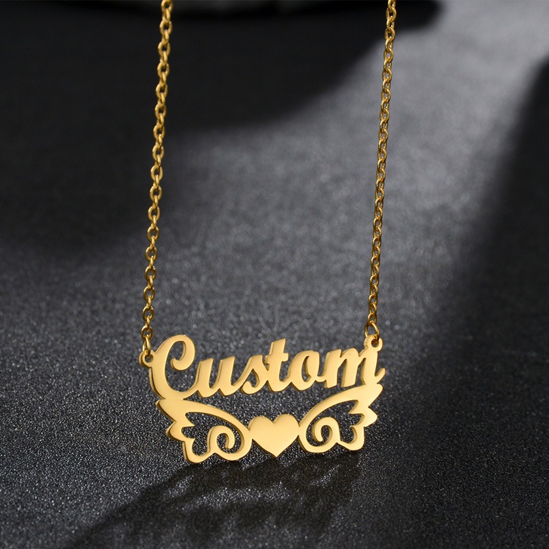 Custom Name Angel Wings Necklace Titanium Steel Jewelry Personalized Name Clavicle 定制名字天使翅膀项链