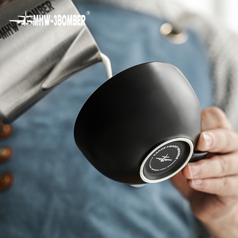 MHW-3BOMBER 280ml Ceramic Coffee Cup & Saucer Set – Perfect for Lattes, Cappuccinos, and Espresso