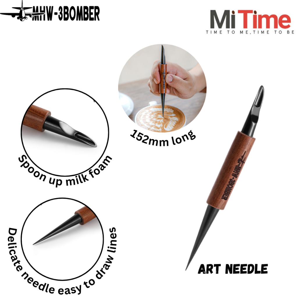 MHW-3BOMBER Coffee Art Needle 152mm Latte Art Etching Pen Barista Latte Art Needle Rosewood Handle
