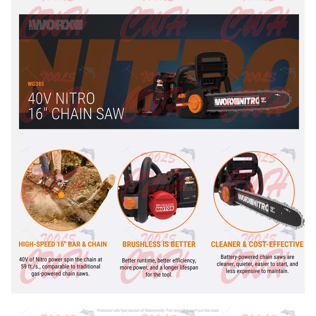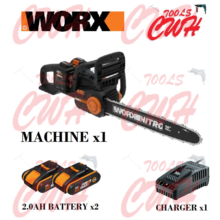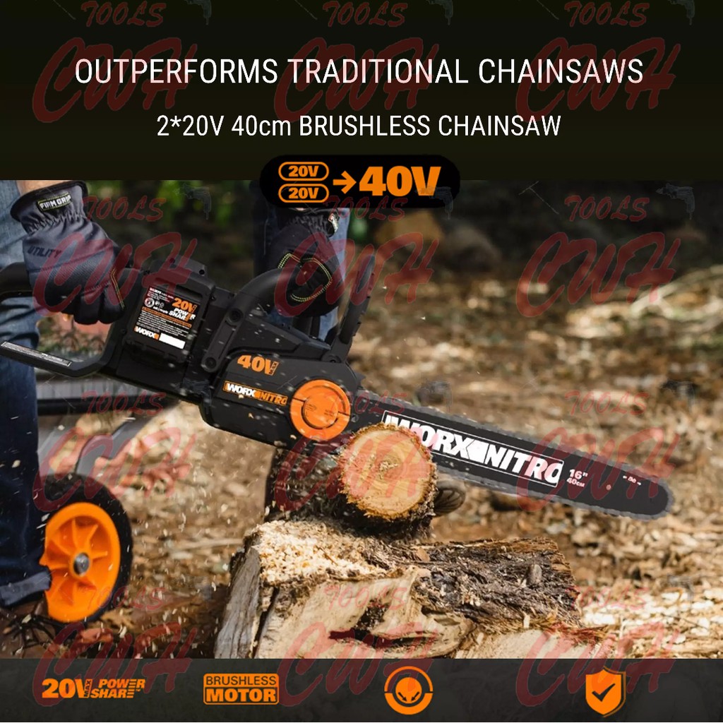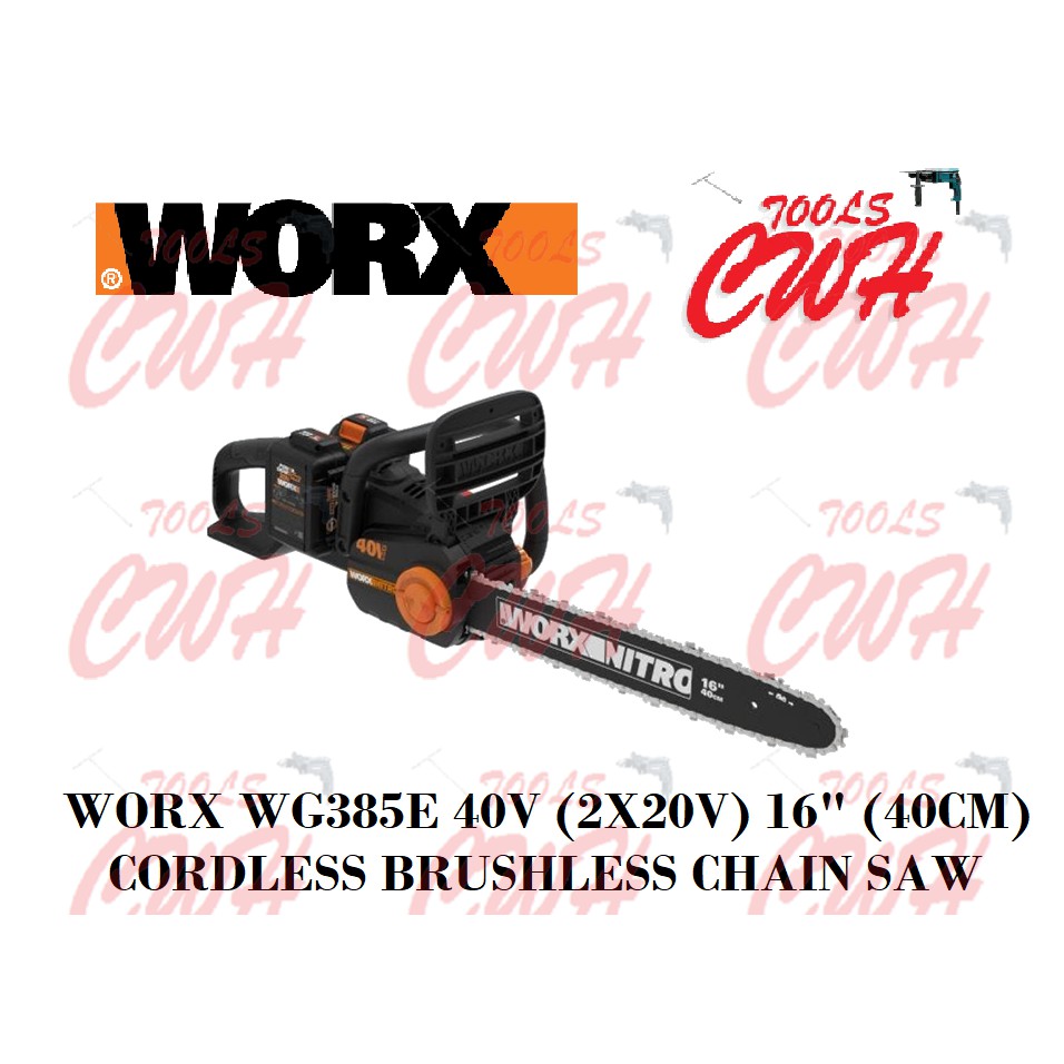 WORX WG385E 20V+20V 16" 40CM CORDLESS BRUSHLESS CHAINSAW CHAIN SAW GERGAJI STIHL MS180 KEELAT WA3551 WG322E
