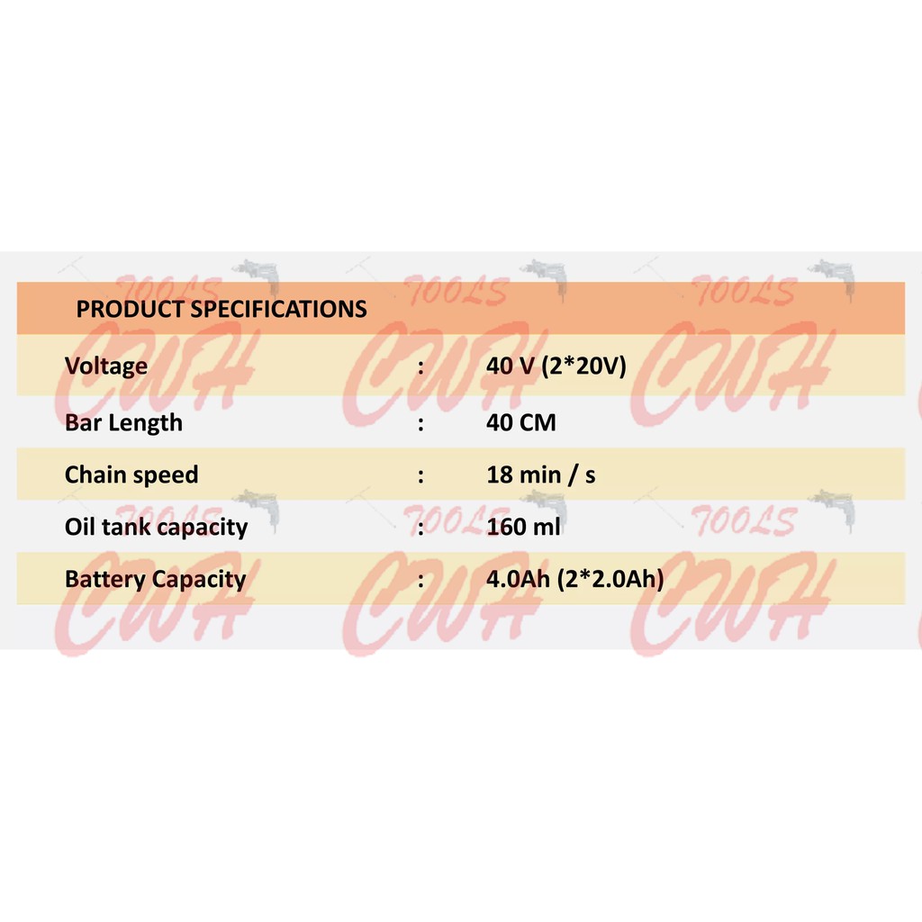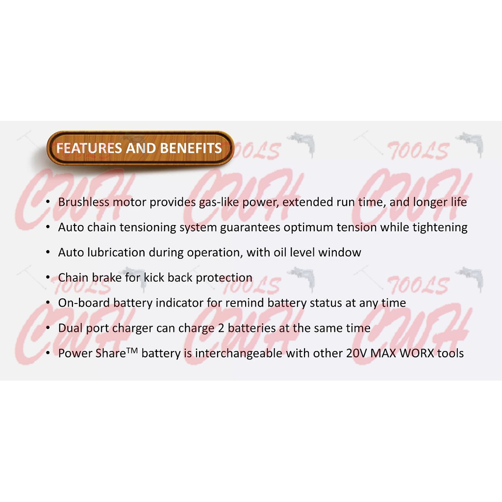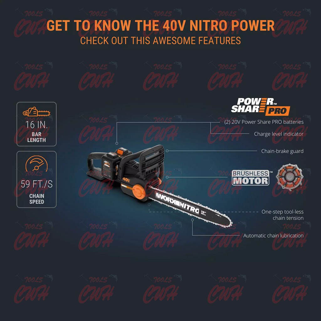 WORX WG385E 20V+20V 16" 40CM CORDLESS BRUSHLESS CHAINSAW CHAIN SAW GERGAJI STIHL MS180 KEELAT WA3551 WG322E