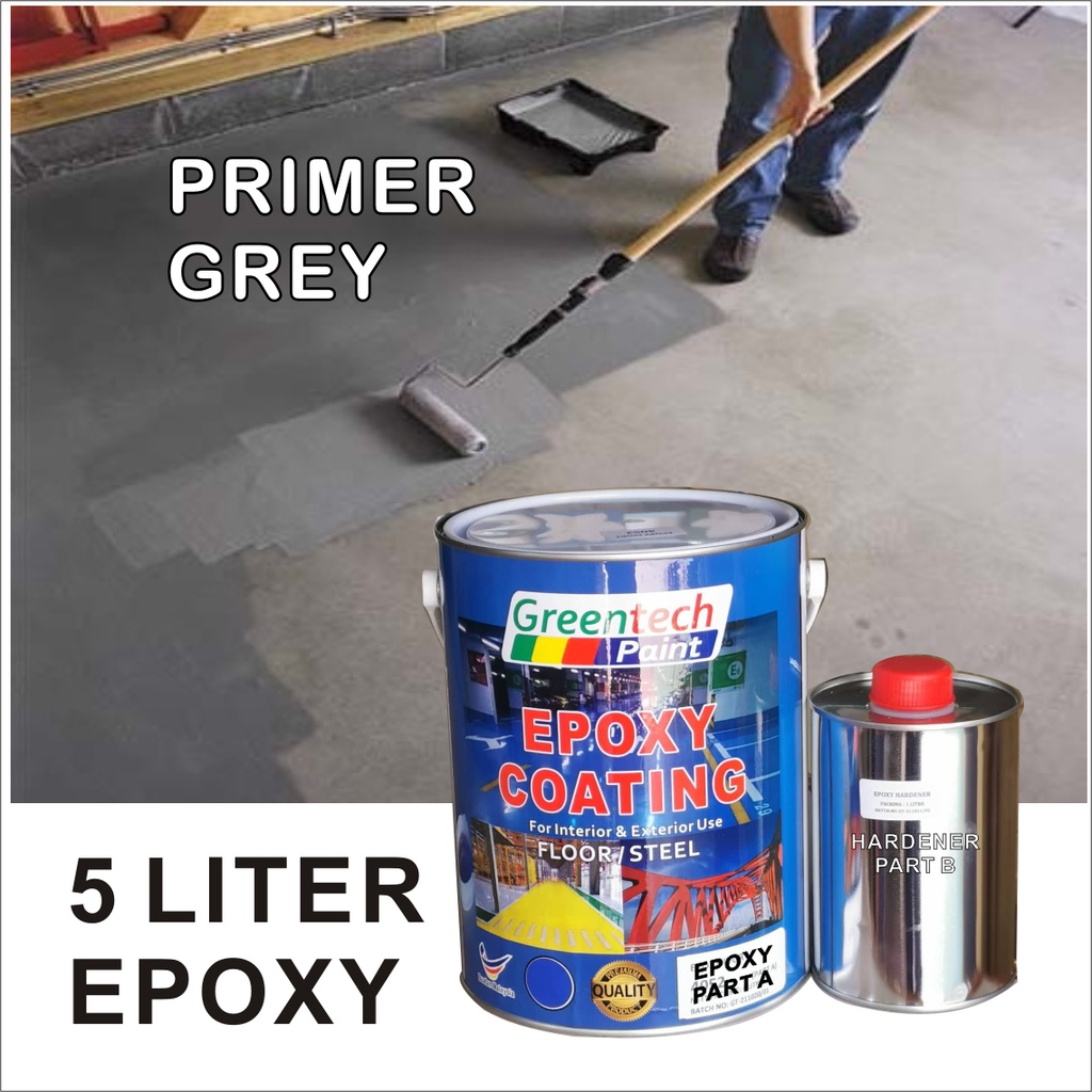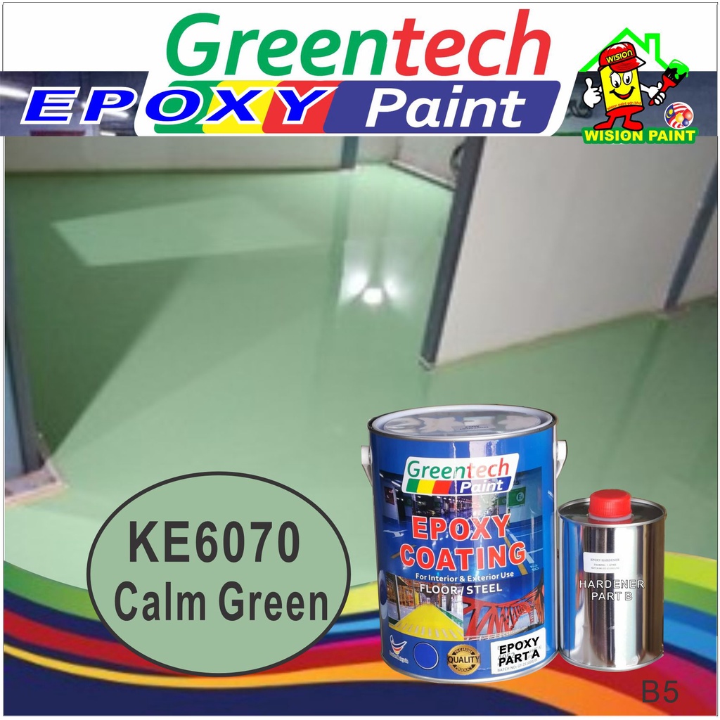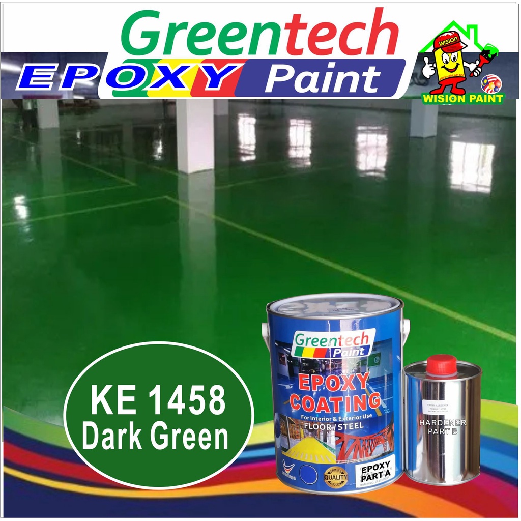 5L Epoxy paint ( GREENTECH PAINT ) Cat Lantai ( 4Liter+ 1Liter Hardener ) HEAVY DUTY [Include Hardener] Coating / KTH