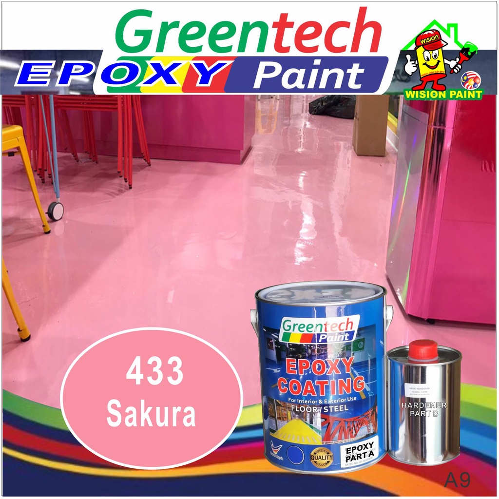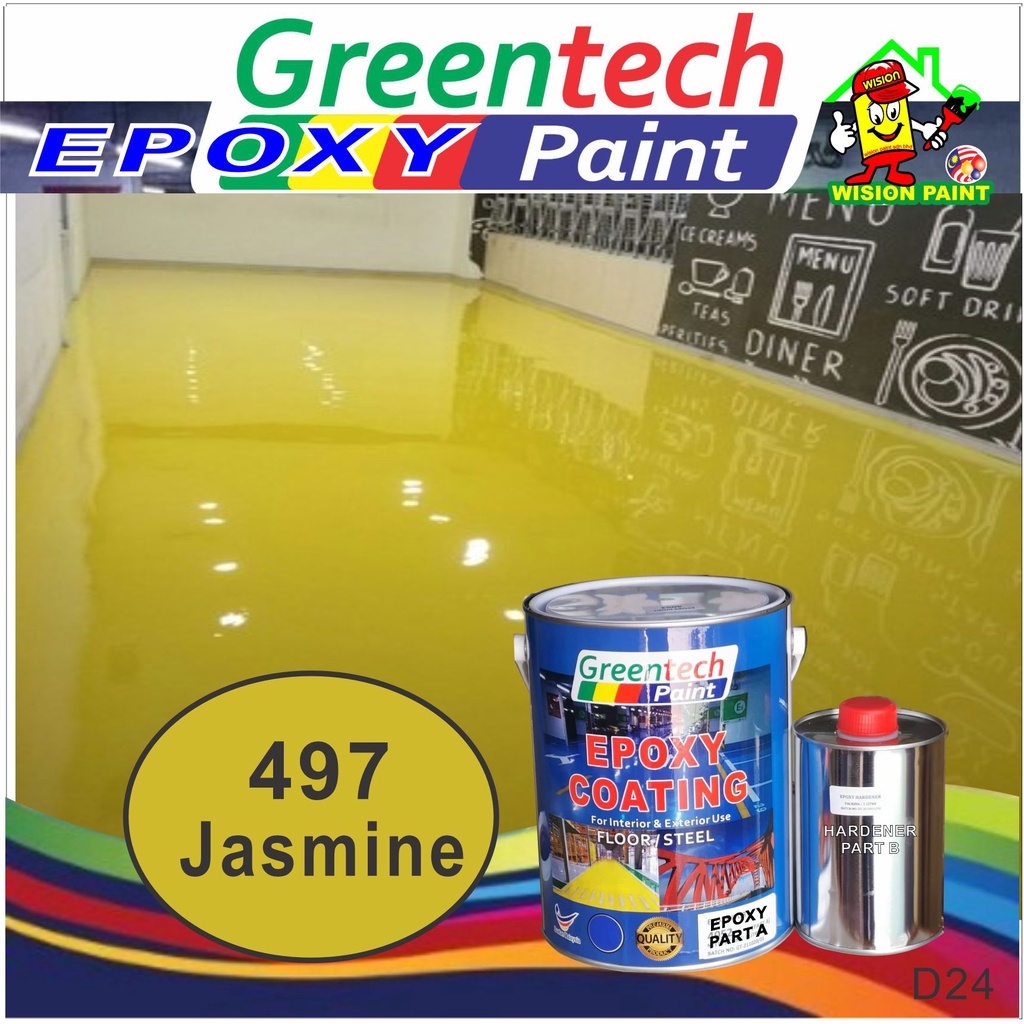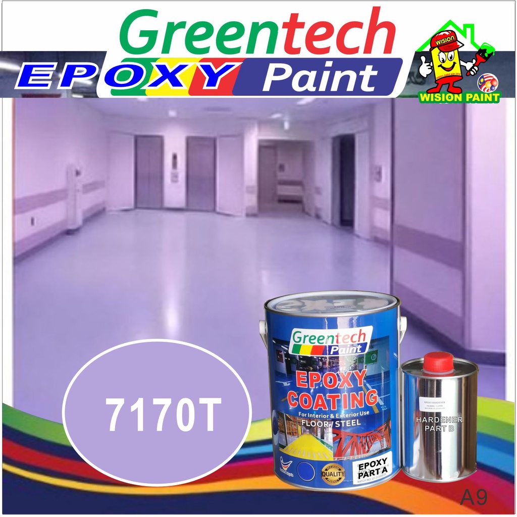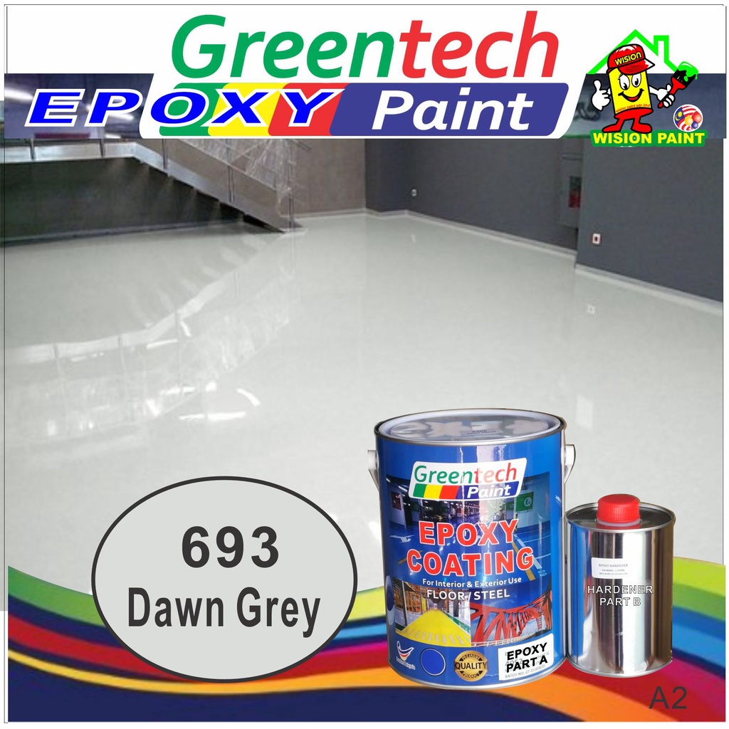 5L Epoxy paint ( GREENTECH PAINT ) Cat Lantai ( 4Liter+ 1Liter Hardener ) HEAVY DUTY [Include Hardener] Coating / KTH