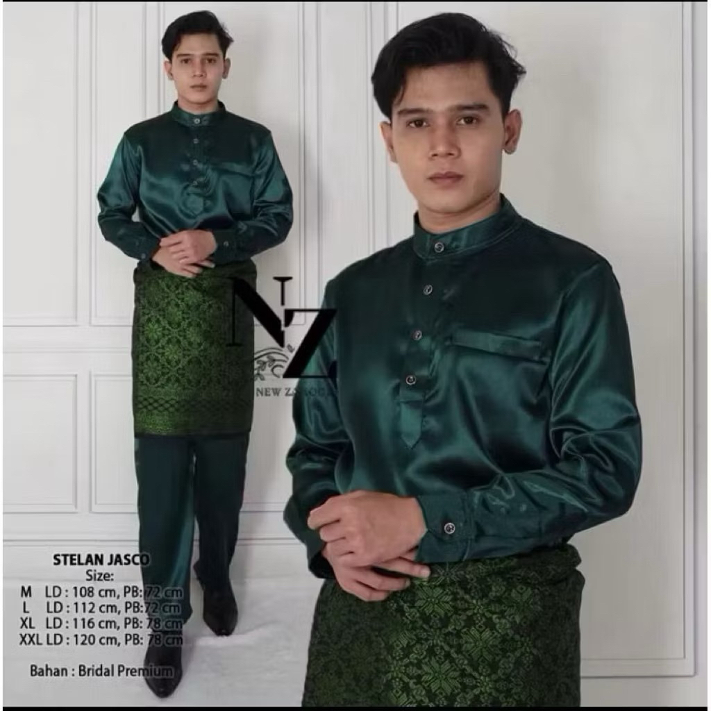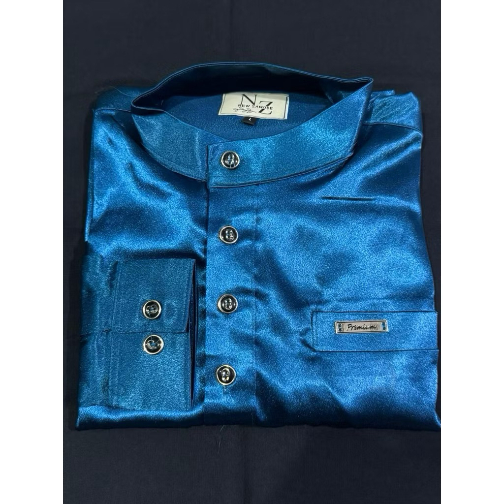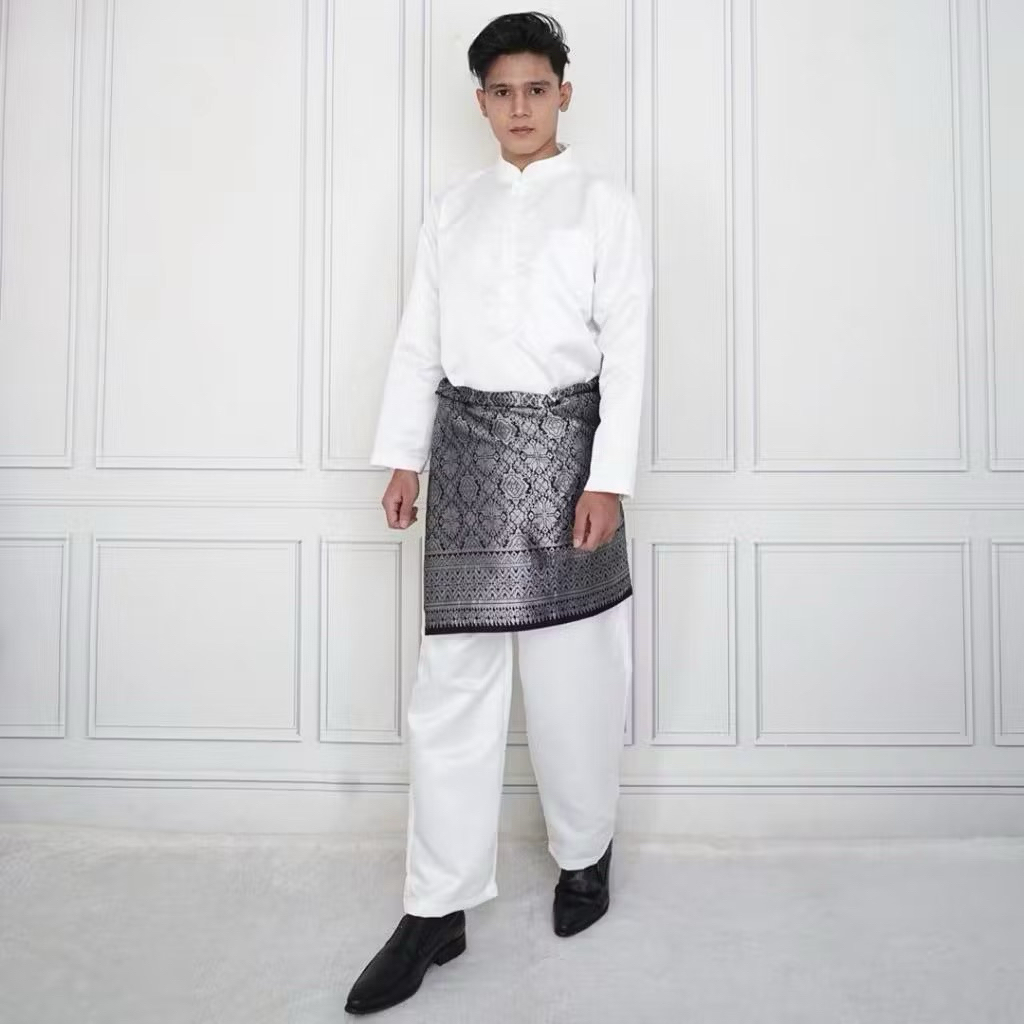 Modern Teluk Belanga Kurung Set, Men's Long Sleeve Satin Shirt Set
