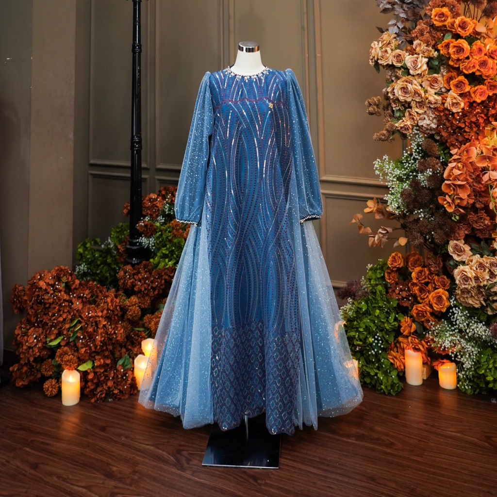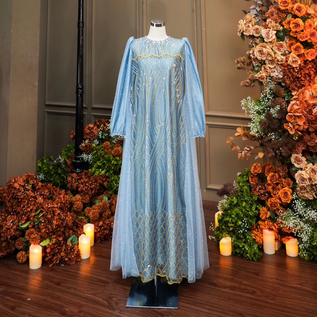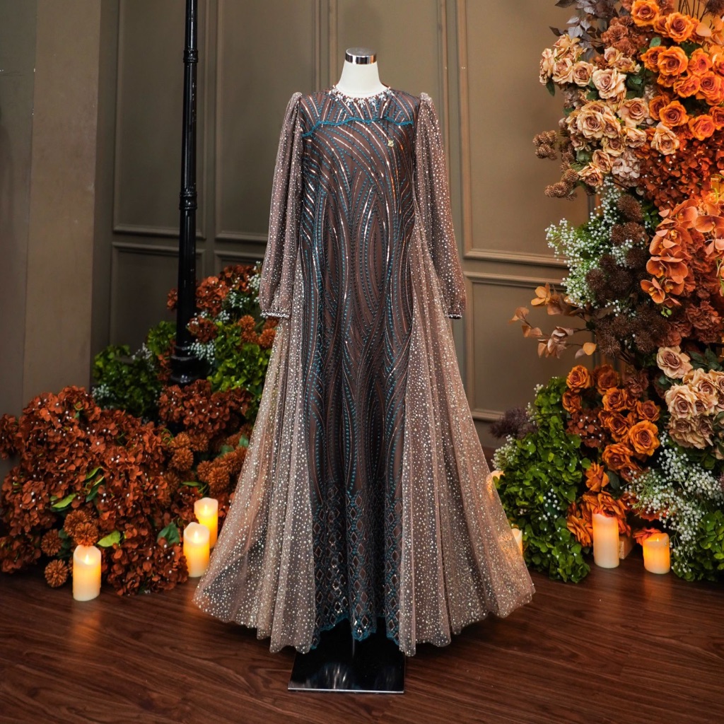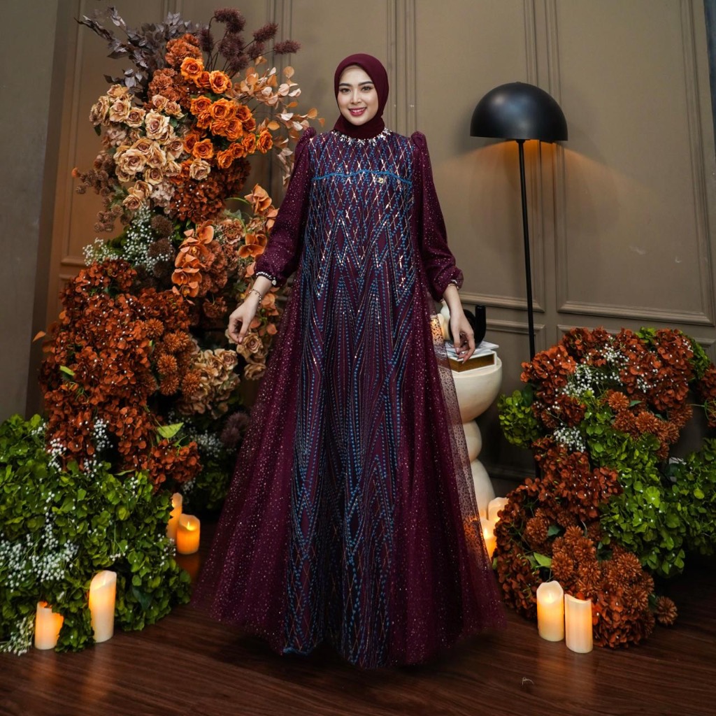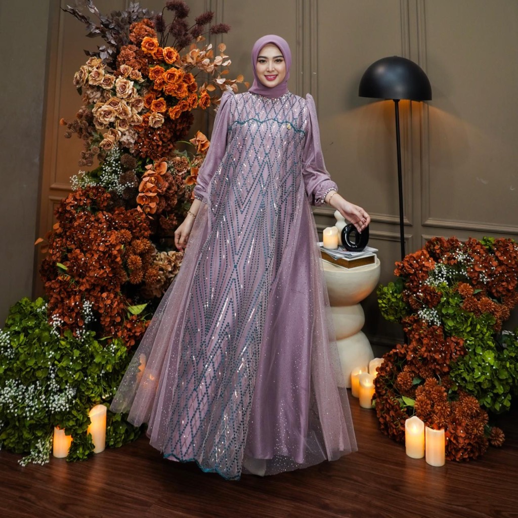 Dumma.id - Kamilah Luxury Women's Clothing, Margot Tille Mix Tille Glitter Layered Inner Silk Armany and Sequins, Beautiful Gamis Dress