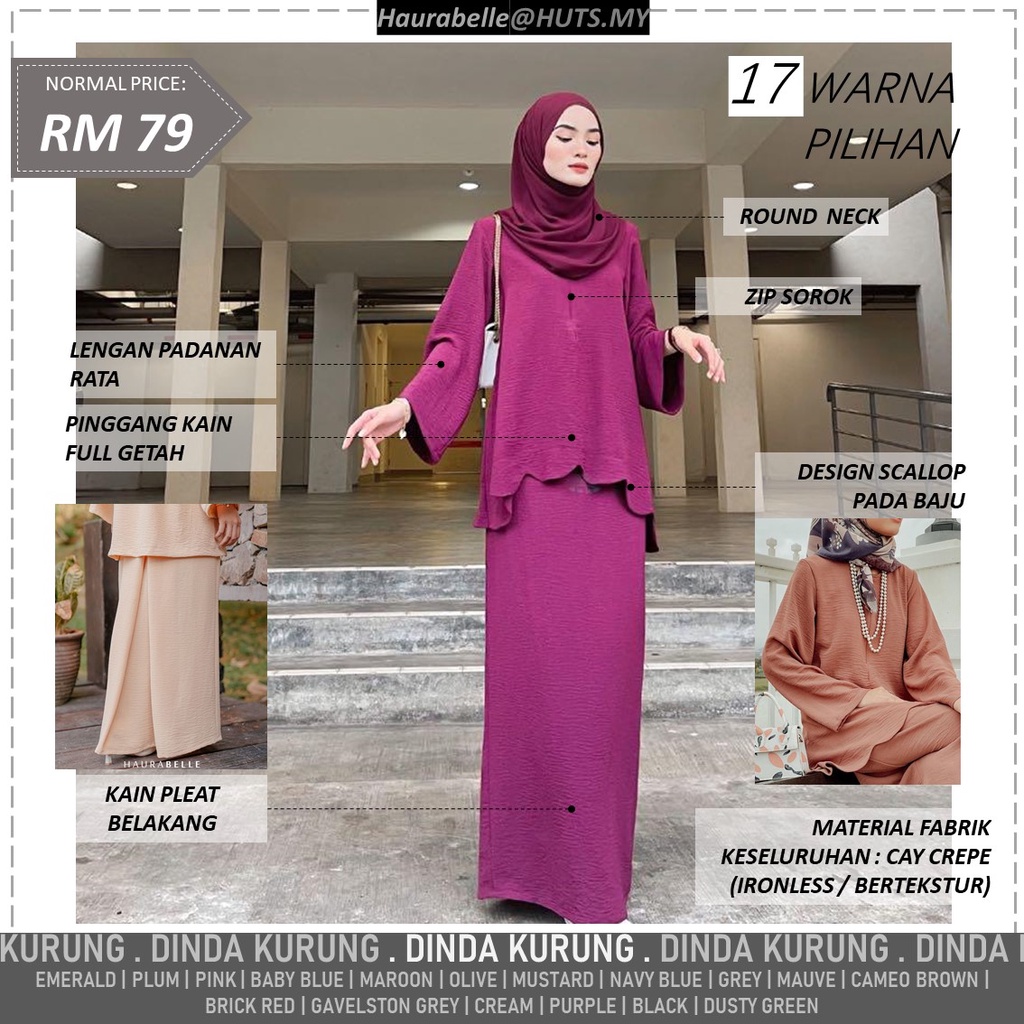 DINDA KURUNG (Part 2) by Haurabelle - Kurung Ironless (Cay Crepe) Total 17 Colors