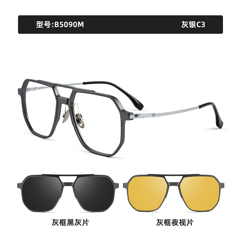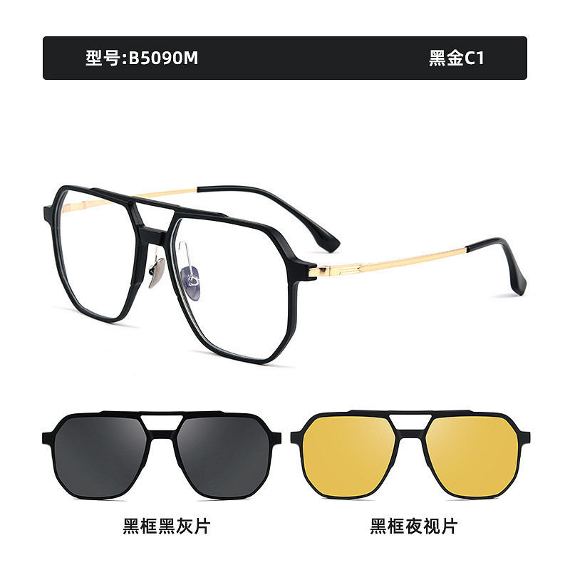 3 IN 1 Glasses Frame Polarized Sunglasses Night Vision Goggles Suit Magnetic Double Beam Spectacles B5090M