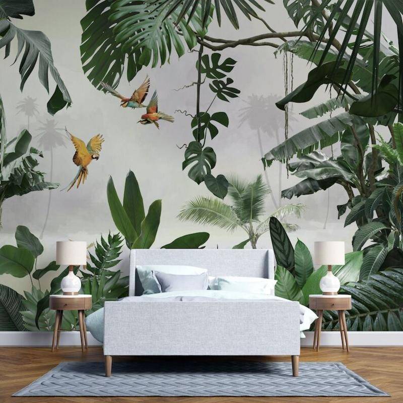 Rainforest Wallpaper- Tropical Wall Mural- Removable- Tropical Forest- Palm Tree- Peel and Stick- Self Adhesive- Living Room Decor sticker