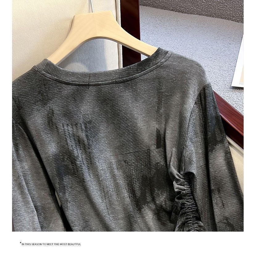 顯瘦 不規則 抽繩 上衣女百搭 Tie dye long sleeves t Women's shirt 扎染长袖T恤女春秋季新款女装韩版宽松显瘦不规则抽绳300斤上衣女 Tie-Dye Long-Sleeved T-Shirt for Women - Lightweight & Slimming Design Suitable for Spring & Autumn