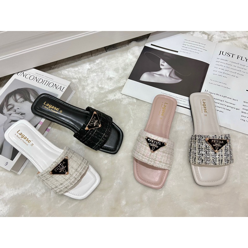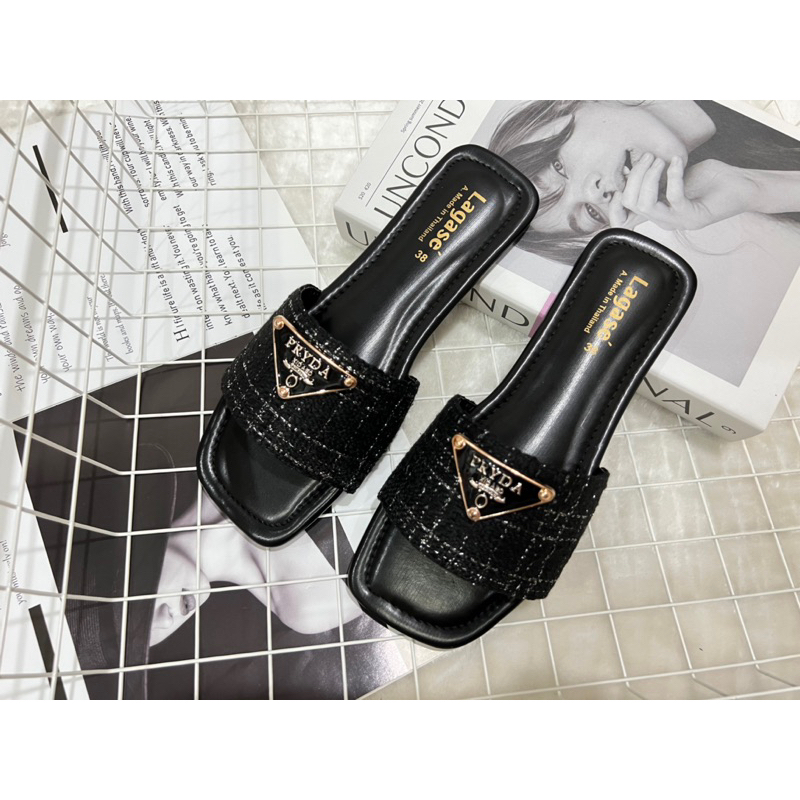 Rinyashoes Slip-On Sandals With Pd Accessories Tweed Fabric There Are 4 Sizes 36-44.