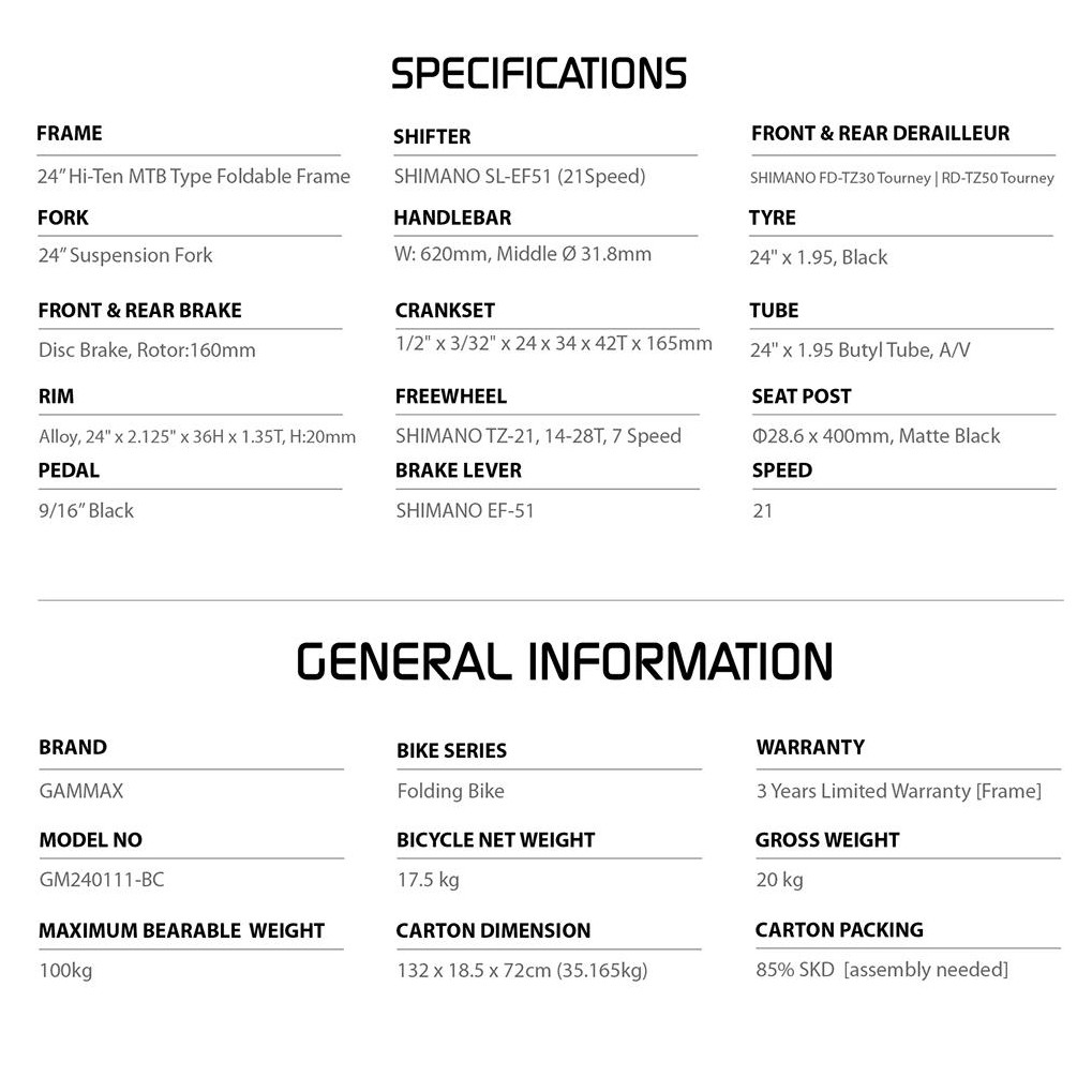 Gammax 24 inch Folding MTB Disk Brake GM240111 (21SP)