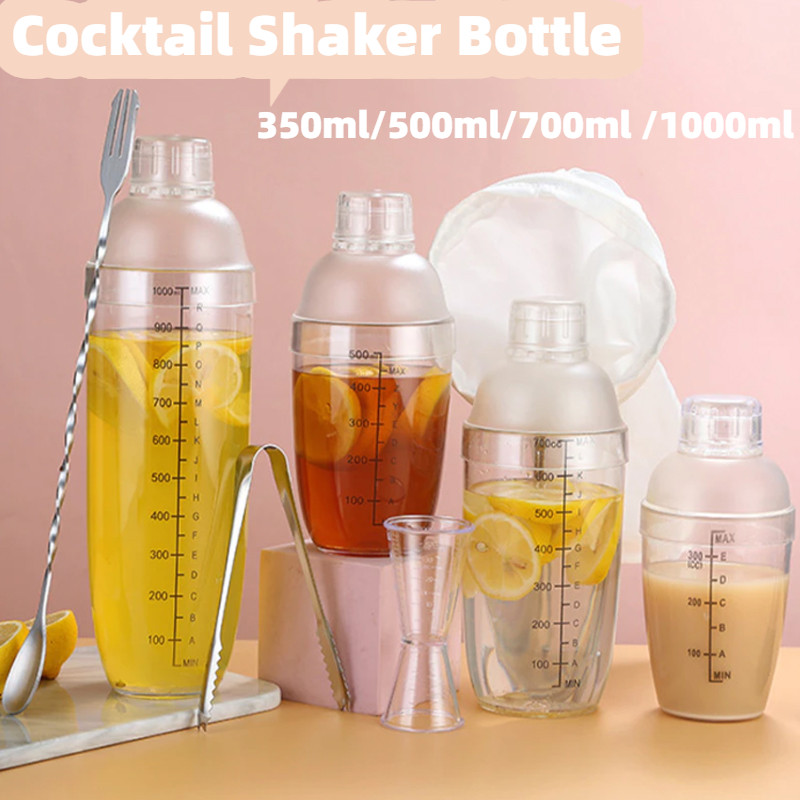Transparent 350ml/500ml/700ml/1000ml Cocktail Shaker Bottles with Scales Large Capacity Shaking Cup