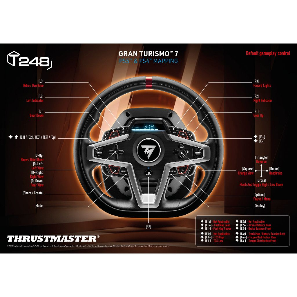 Thrustmaster Steering Wheel - T248 / T-GT II / T300 RS GT / T80 Ferrari 488 (Compatible PS4, PS5 & PC)