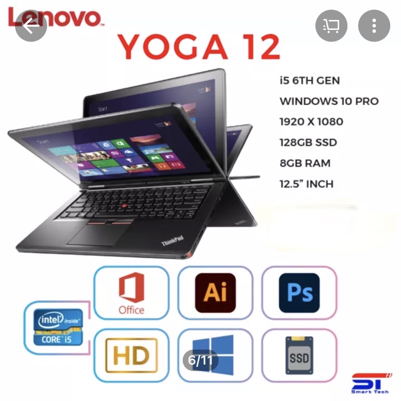 🆘 Lenovo 💯 🇲🇾 Yoga 12 i5 5th gen touch screen with pen Ssd And hdd skali Adobe photoshop illustrator Antivirus