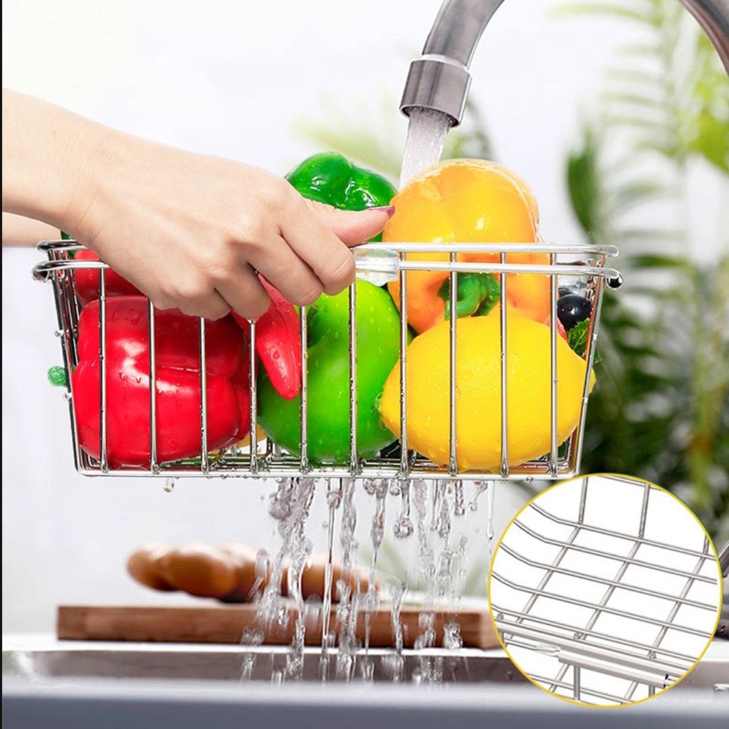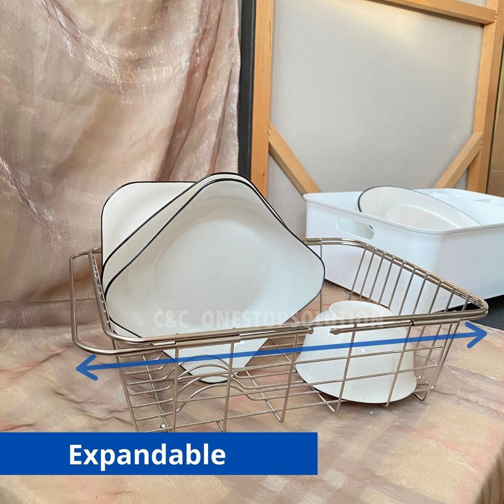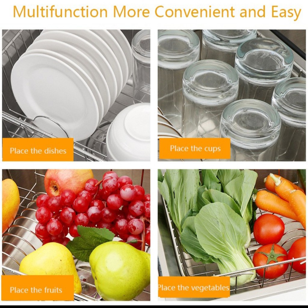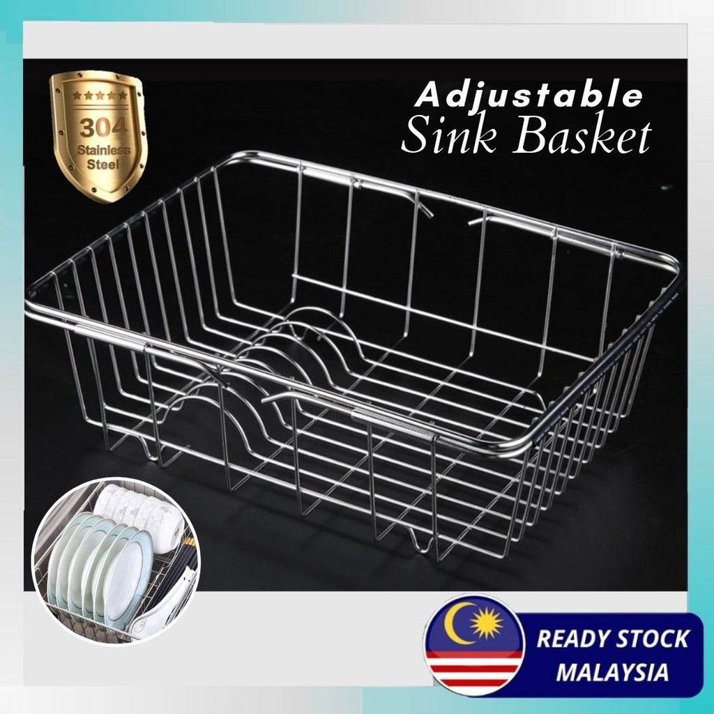 304 Stainless Steel Sink Basket Retractable Drain Rack Kitchen Fruit Vegetable Storage Rack Telescopic drain basket