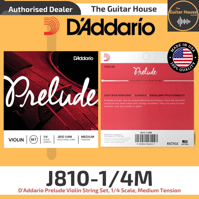 D'Addario J810 1/4M Prelude Violin Strings, 1/4 Scale, Medium Tension (Daddario) (Made in USA) (J8101/4M)