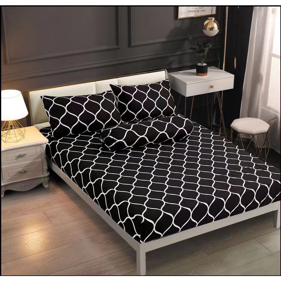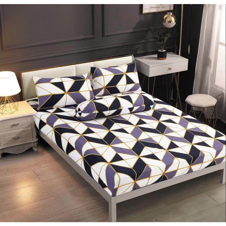CS_ #2 Premium Quality Bedsheet 4in1 King Queen/2in1 Single Cotton Fitted Bedsheet Set Cadar Getah Keliling Sarung