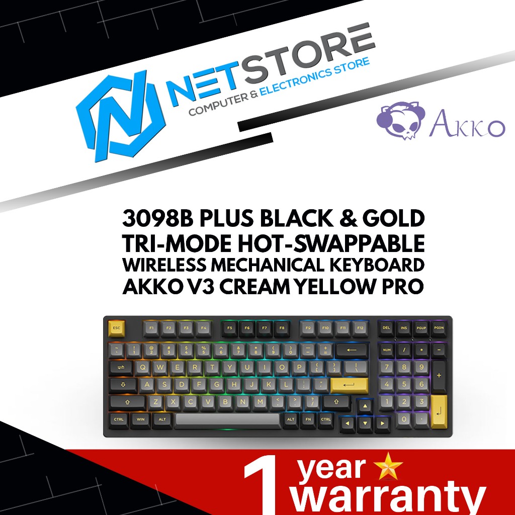 AKKO 3098B PLUS BLACK & GOLD TRI-MODE HOT-SWAPPABLE WIRELESS MECHANICAL KEYBOARD AKKO V3 CREAM YELLOW PRO-6925758626309