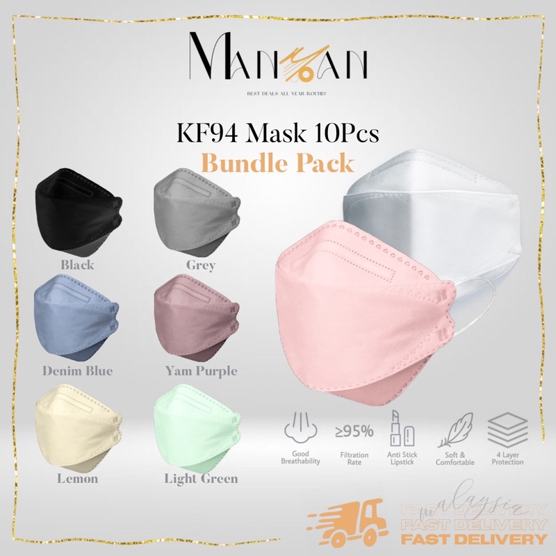 𝗞𝗙𝟵𝟰/𝗞𝗡𝟵𝟱 Mask 4Ply Earloop Face Mask Adult Pelitup Muka Dewasa Face Mask Adult 10pcs Ready Stock Non Medical