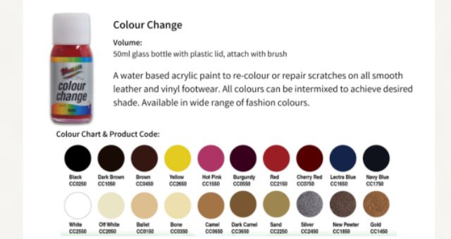 Colour Change (Cat Kasut) 50ml Repaint Shoes kulit licin atau Leather shucare Colour Shoe