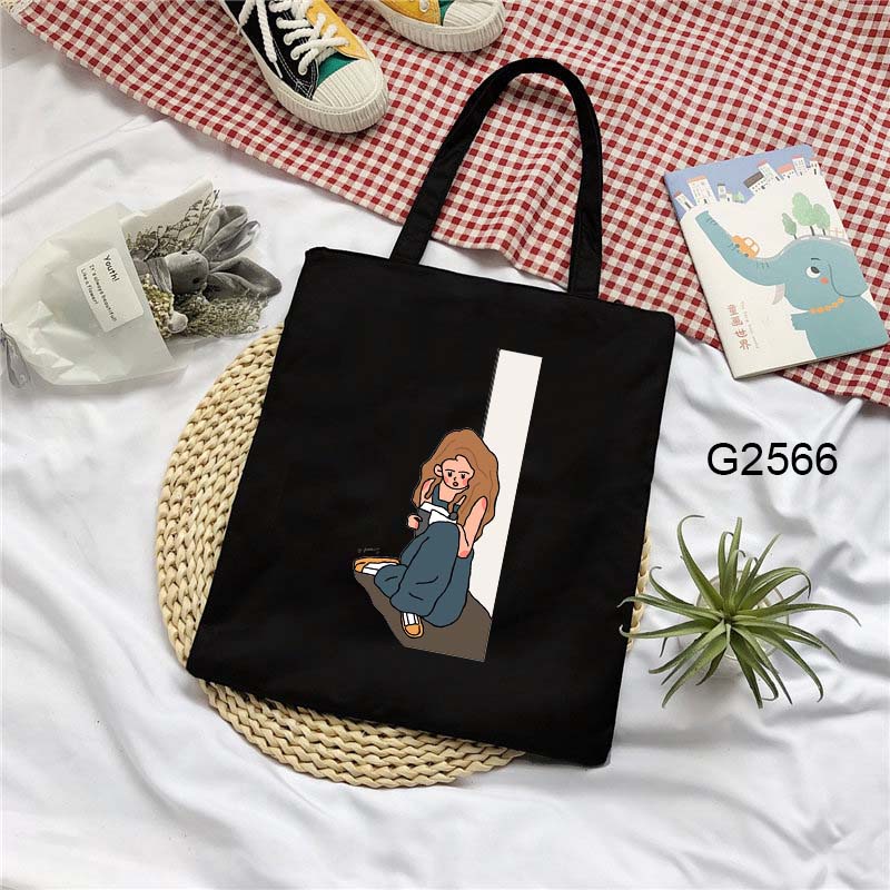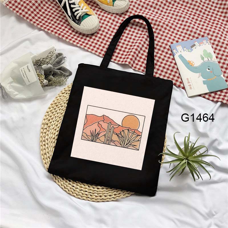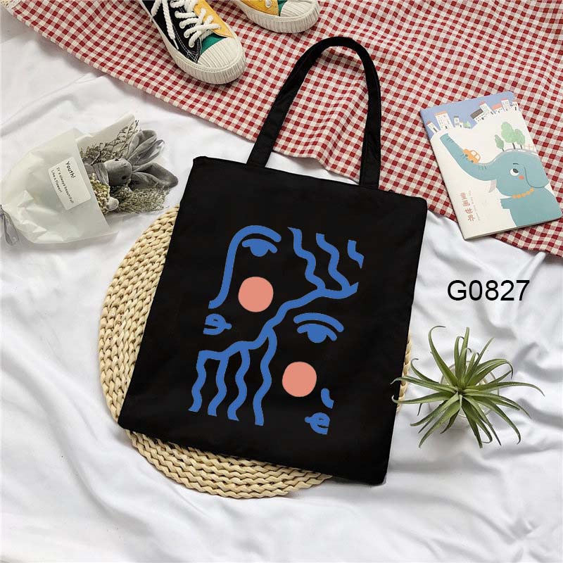 Aesthetic Art Canvas Tote Bag Aesthetic Pic Print Storage Bags Student Black Tote Bags