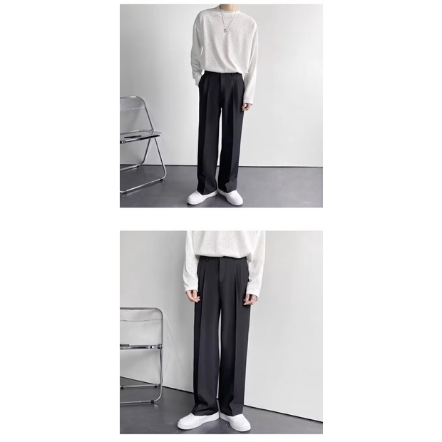 M-2XL Korean Straight Suit Pants Men Loose Korean Casual White Wide-Leg Trousers