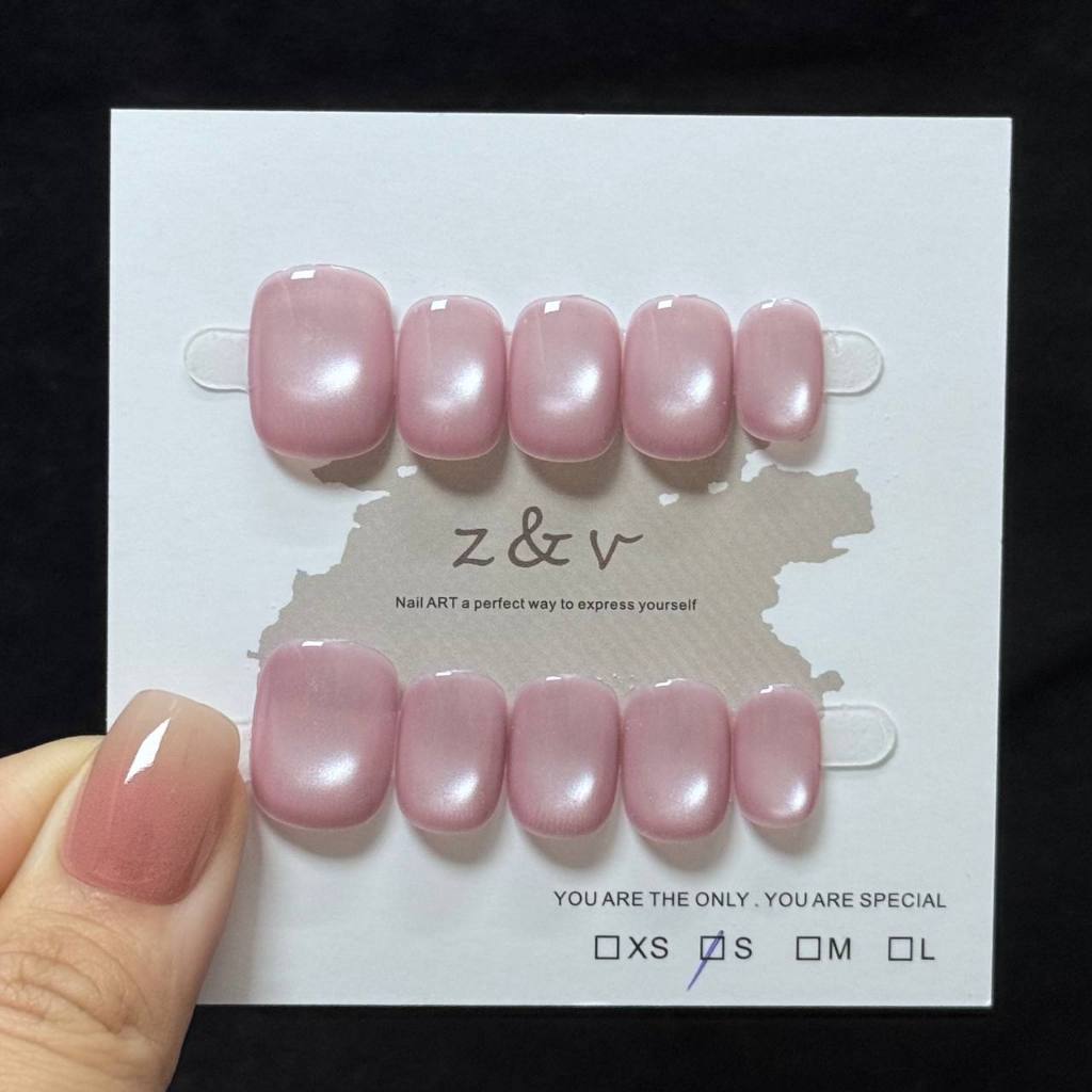 10pcs Kuku Palsu Cat Eye Pink Buatan Tangan Handmade Pink Cat Eye PressOn Nails Cat Eye Easy Elegant