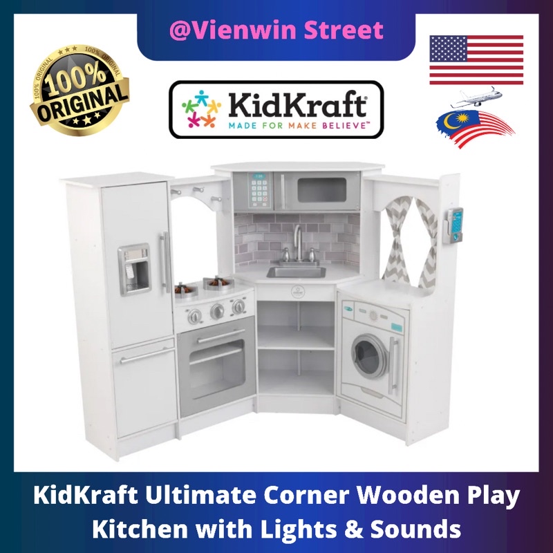 KidKraft Ultimate Corner Play Kitchen with Lights & Sounds White (Wooden)