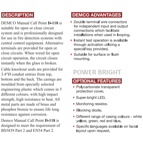 DEMCO MANUAL CALL POINT (SQUARE TYPE) DEMCO-D-118(ST) RED