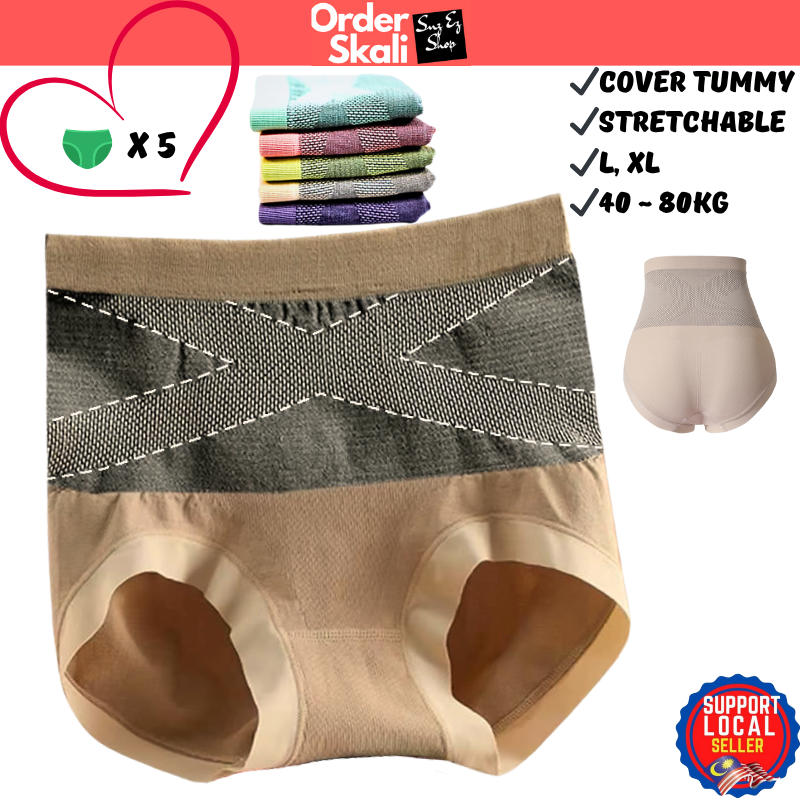 5pcs 40-80kg Seluar Dalam Wanita Pinggang Tinggi Tutup Perut Elastik Lembut Tutup Punggung Saiz Besar Selesa Murah