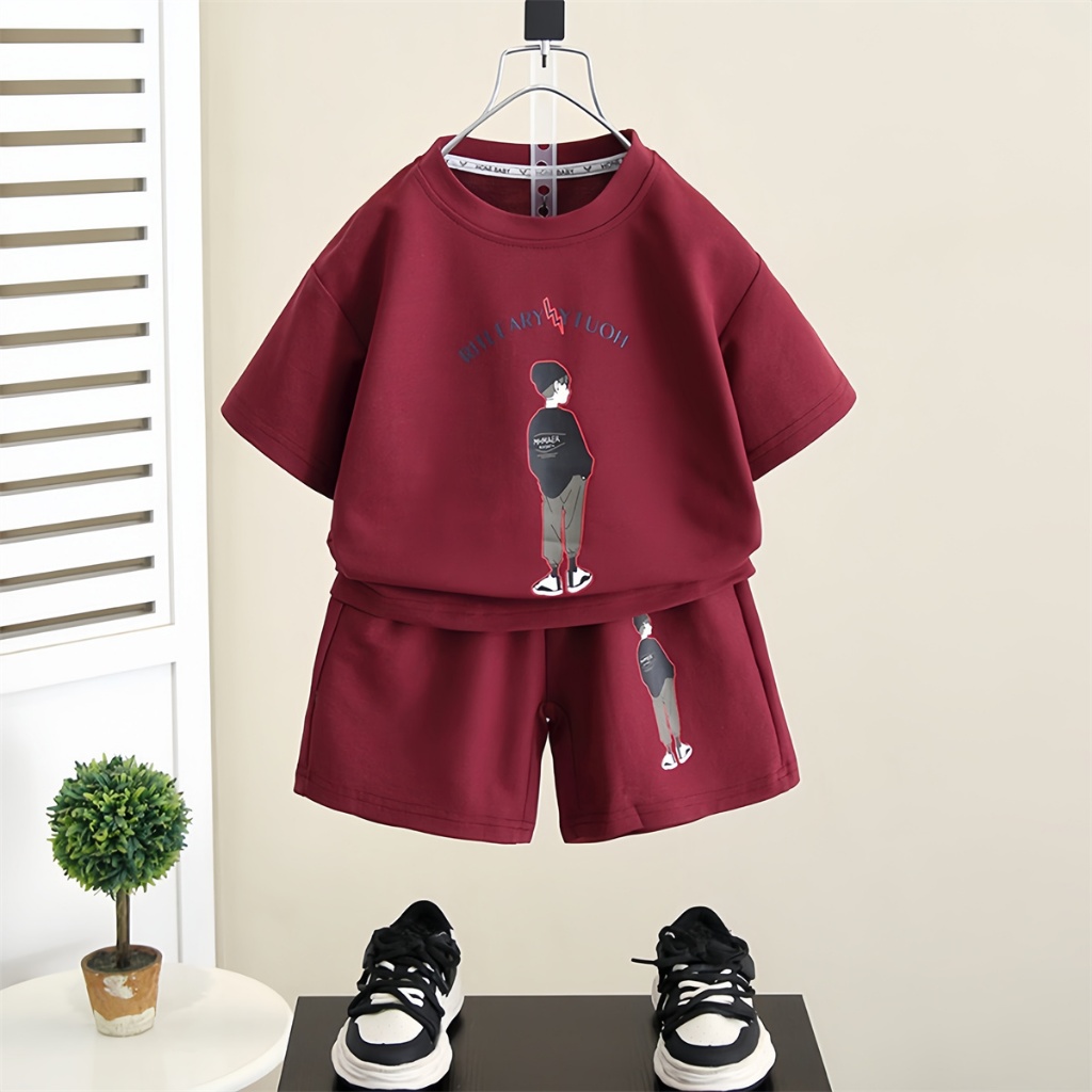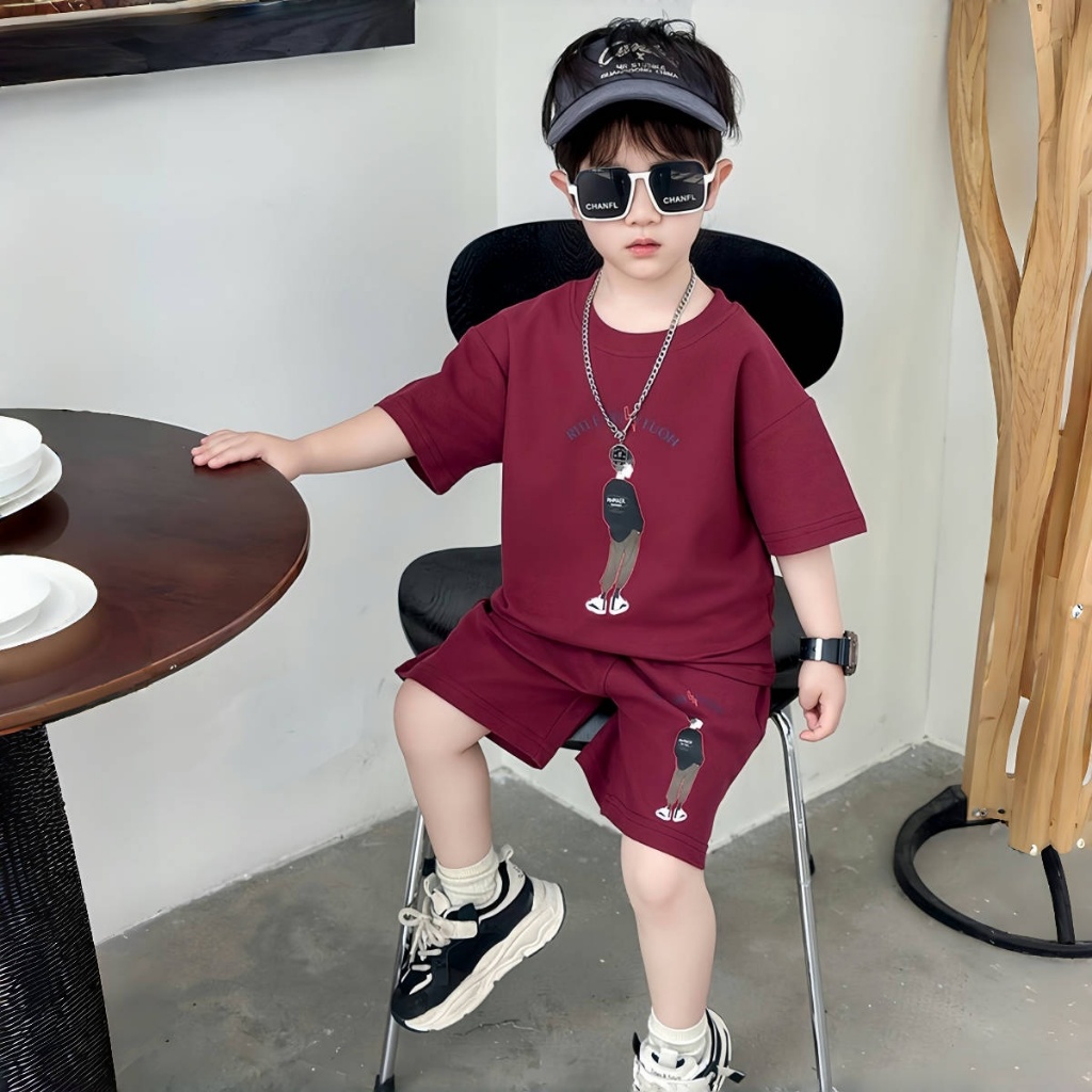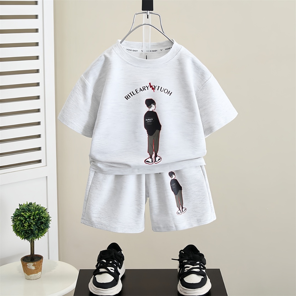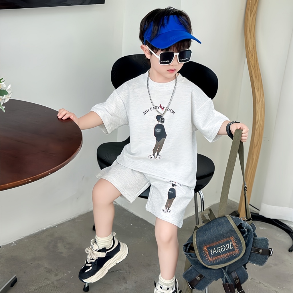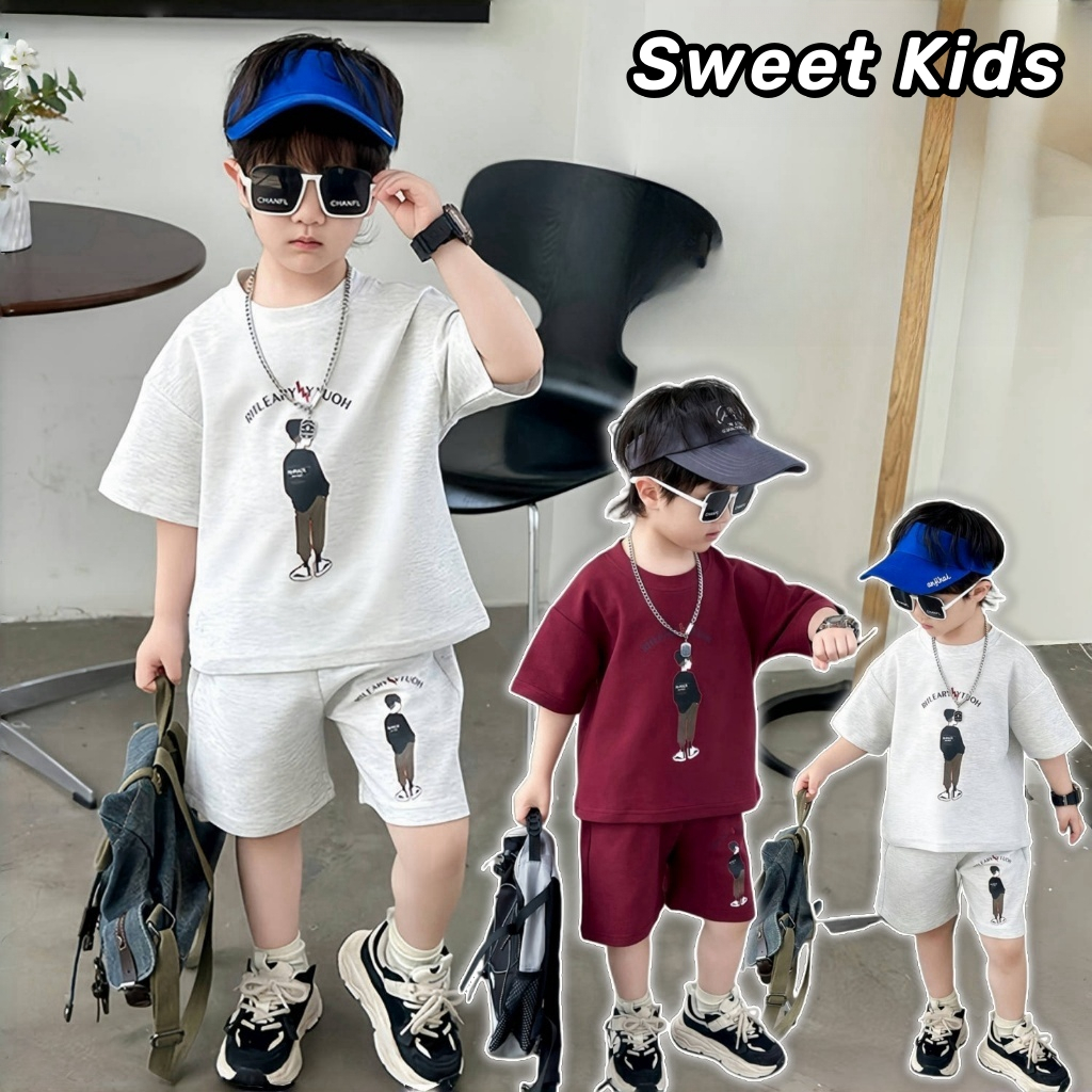【Sweet Kids Deliver from Perak】Baju-T lelaki sut lengan pendek tampan serba boleh atasan baju-T seluar pendek kartun pakaian kanak-kanak kasual
