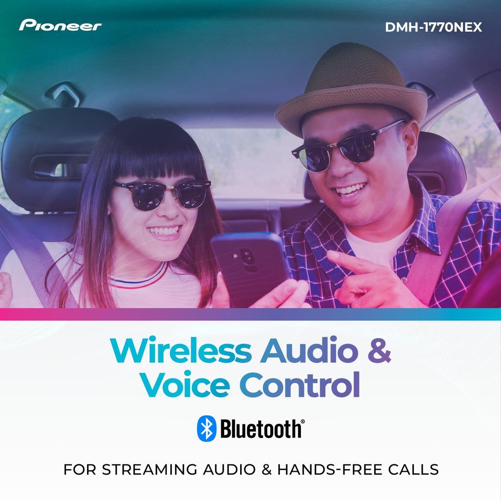 Pioneer DMH-1770NEX double DIN digital multimedia receiver with wired Apple CarPlay and Android Auto, featuring a 6.8-inch capacitive touchscreen.