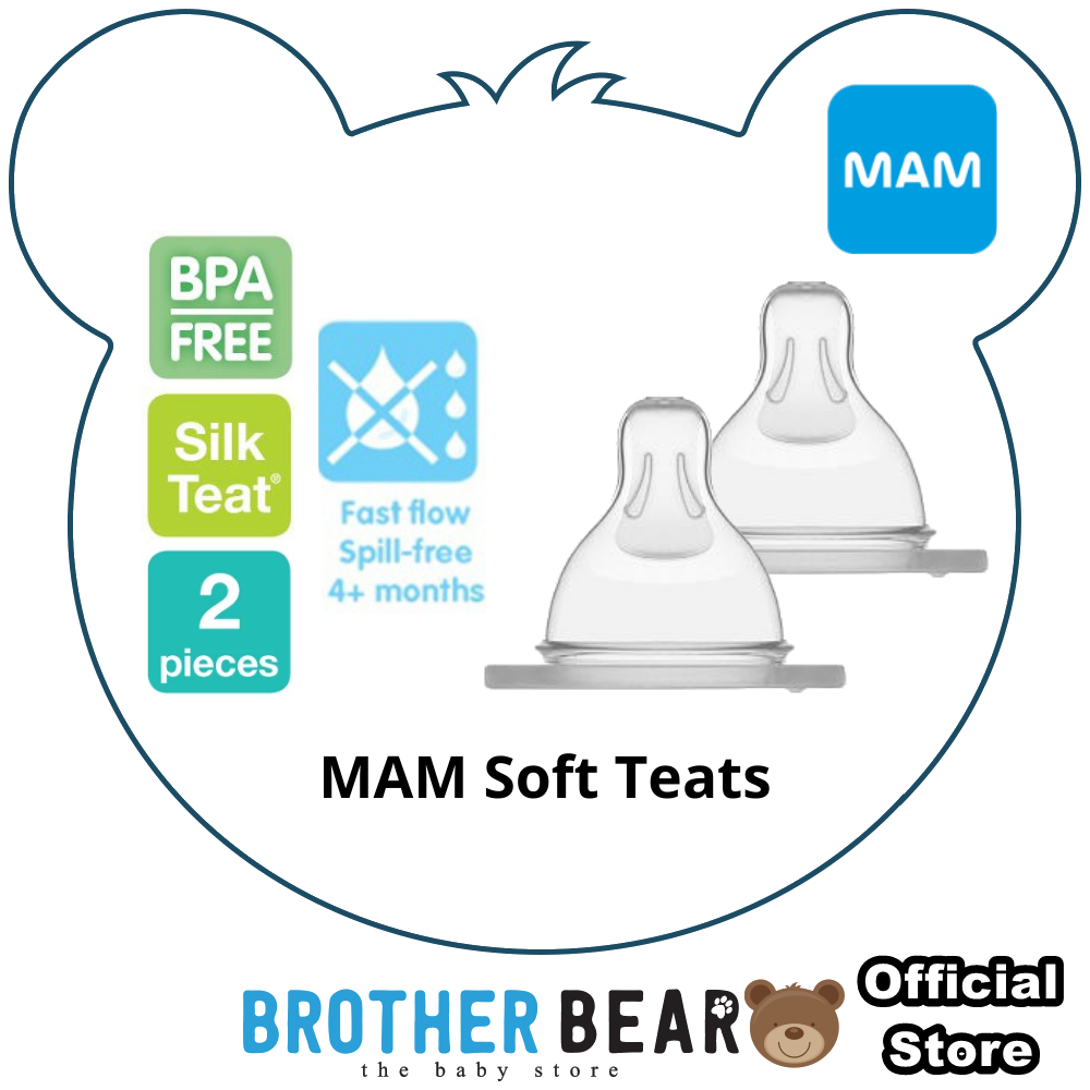 MAM Silk Teat 2pcs/Pack 0 mth+/ 2mth+/ 4mth+ spill free/6mth + Skin Soft Silk | BROTHER BEAR