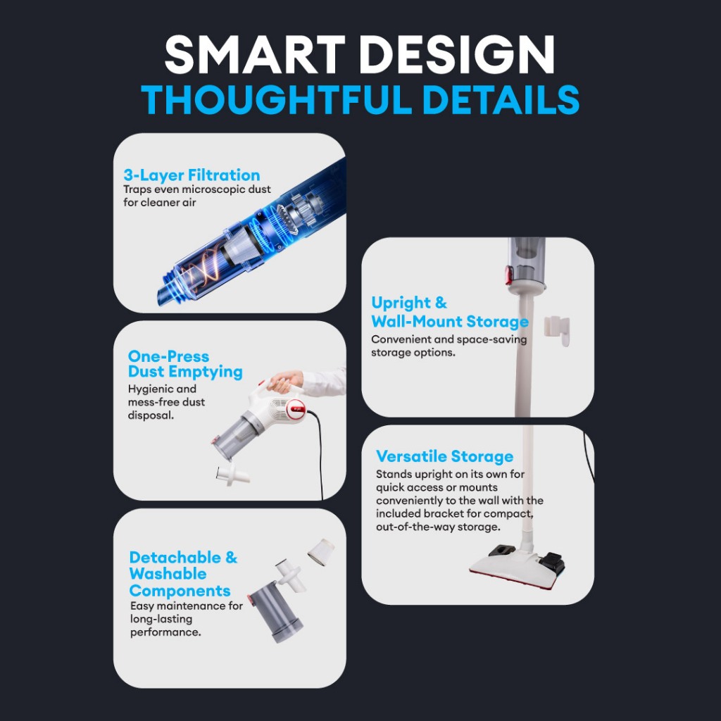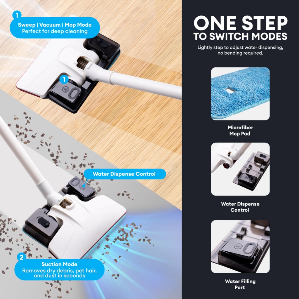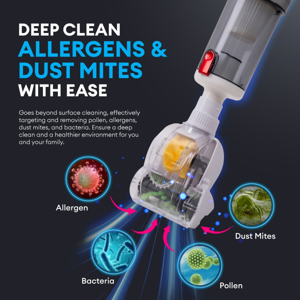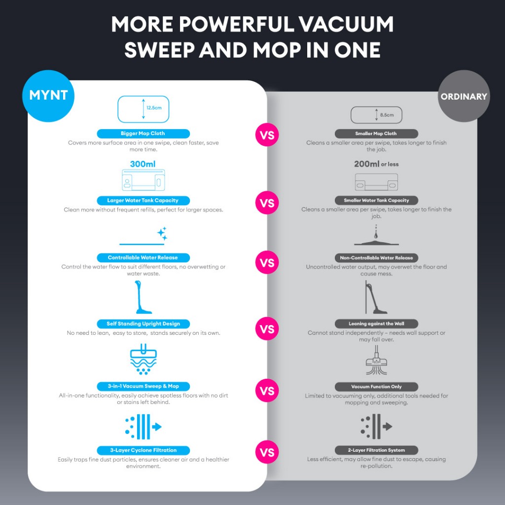MYNT VM1 Pro 3in1 Vacuum Mop Sweep 16000PA Strong Suction Dust Mite Removal Lightweight Low Noise Self-Standing Design