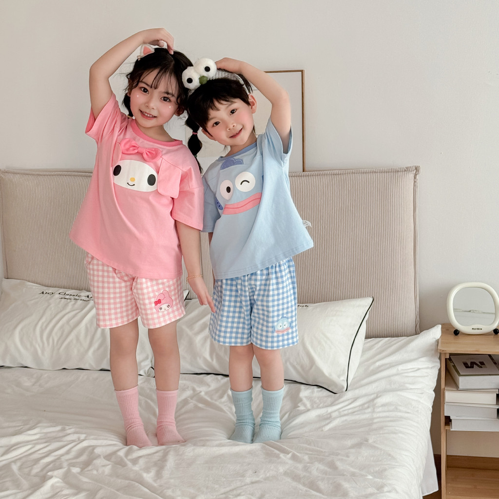 Fashion Kuromi Clothes for Kids Girl Boy Terno 2 3 4 5 6 7 8 Year Old Girls Outfit for Kids Ootd Children Short Sleeve T-shirt Tops with Lattice Shorts Cartoon Casual Suits