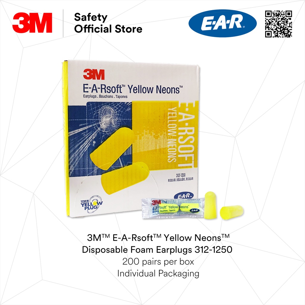 [Sell by Box] 3M™ 312-1250 E-A-Rsoft™ Yellow Neons™ Uncorded Foam Disposable Earplugs/ Sleeping [200 Pairs/Box] EP_ PSD_
