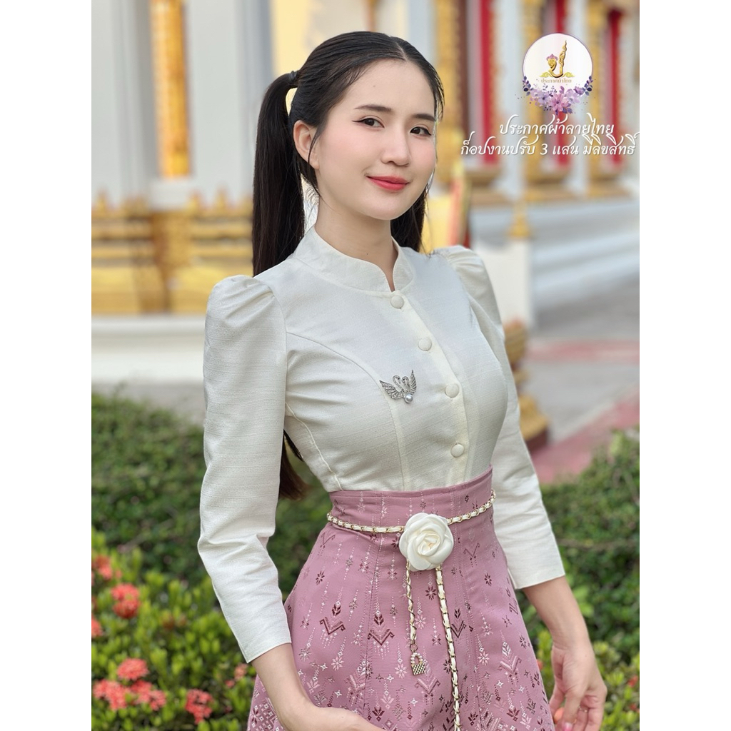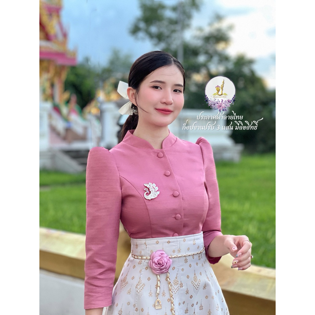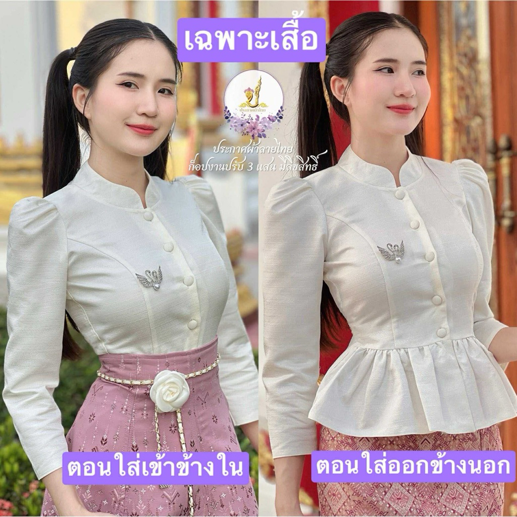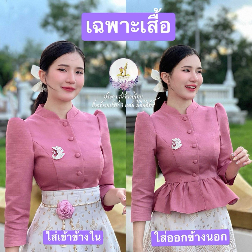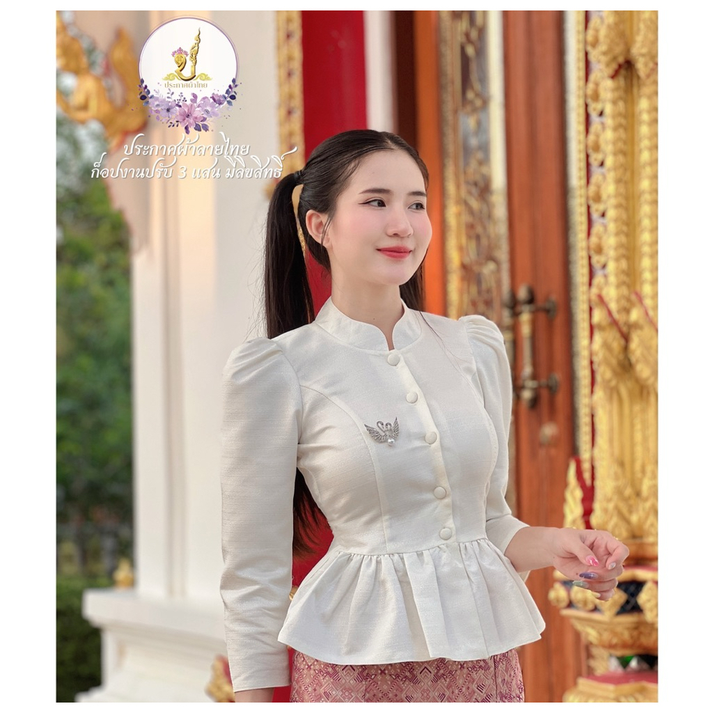 Z142 (Shirt Only) Chinese Collar Crop Top With Ruffles Long Sleeves Glued All Over 2 Colors Thai Dress Kebaya Baju Kebaya