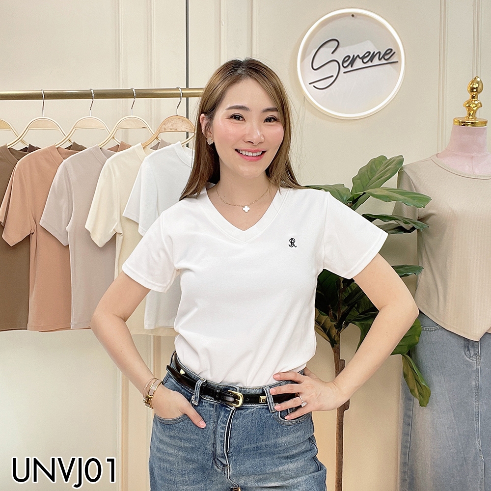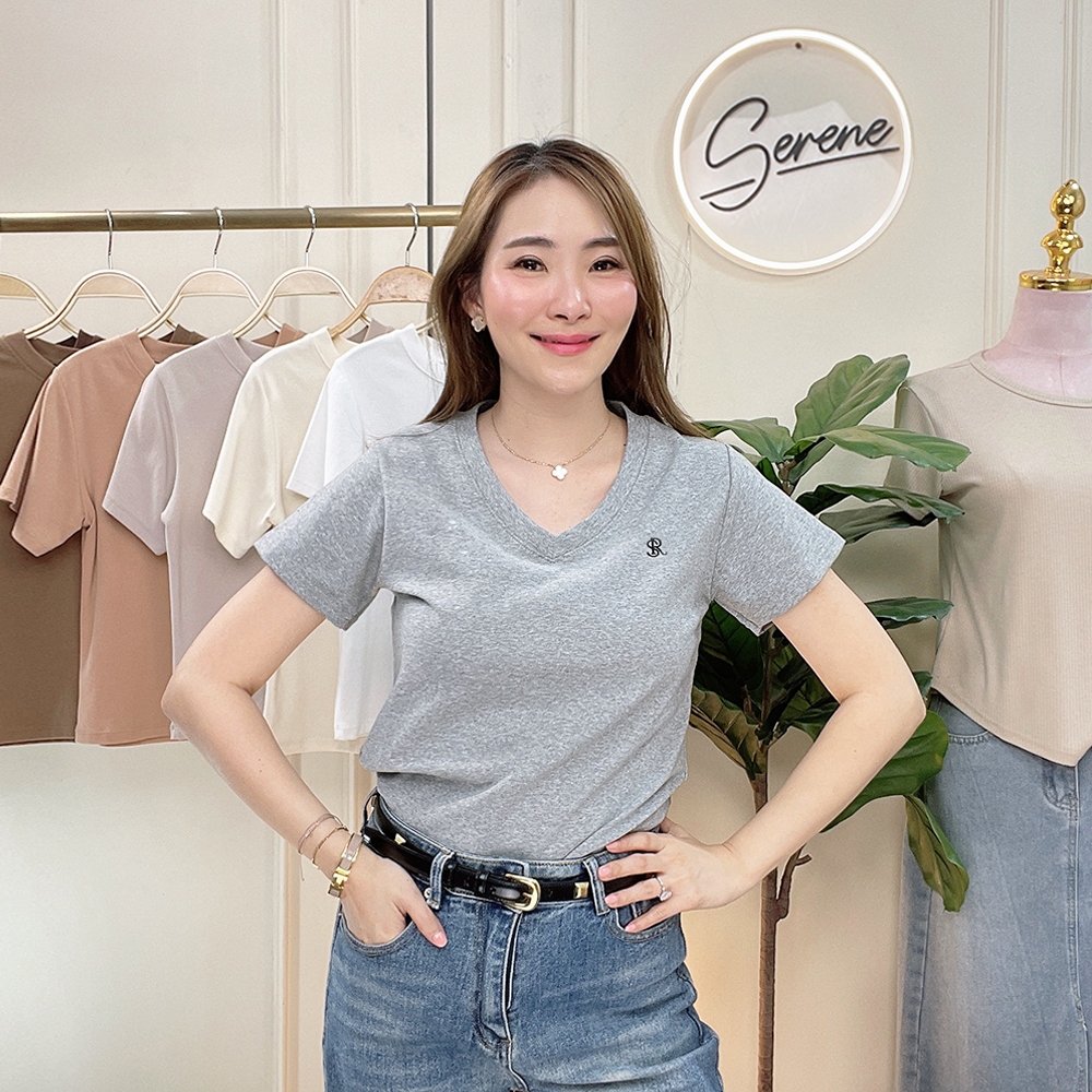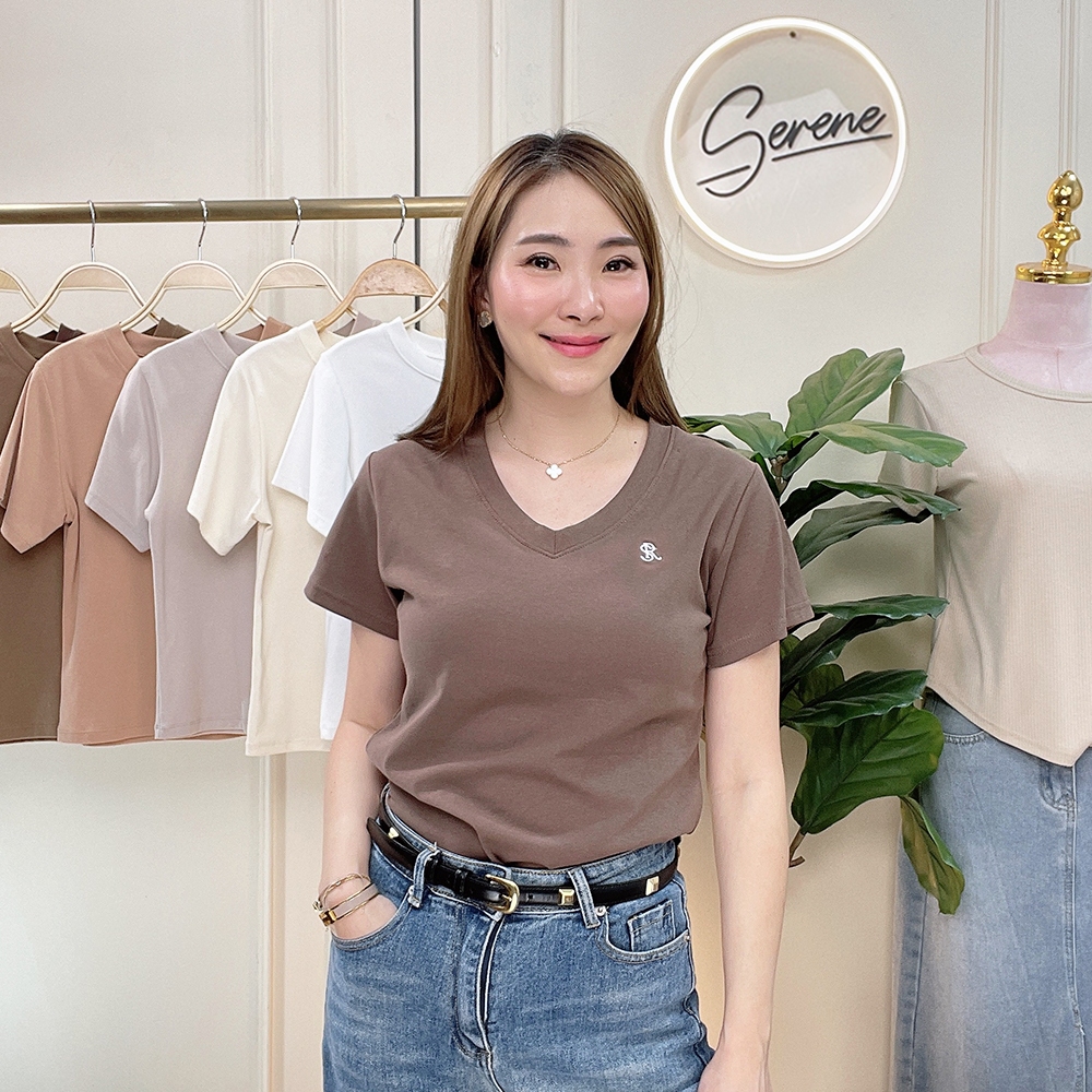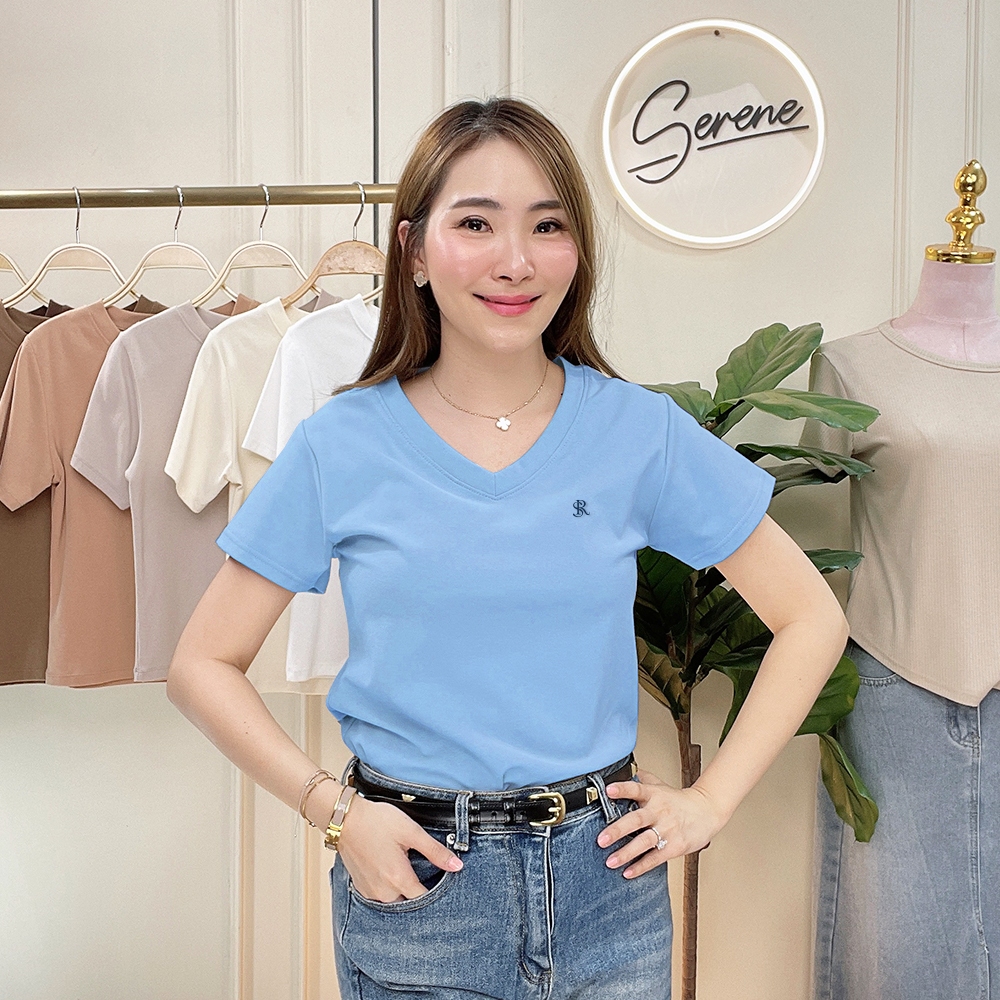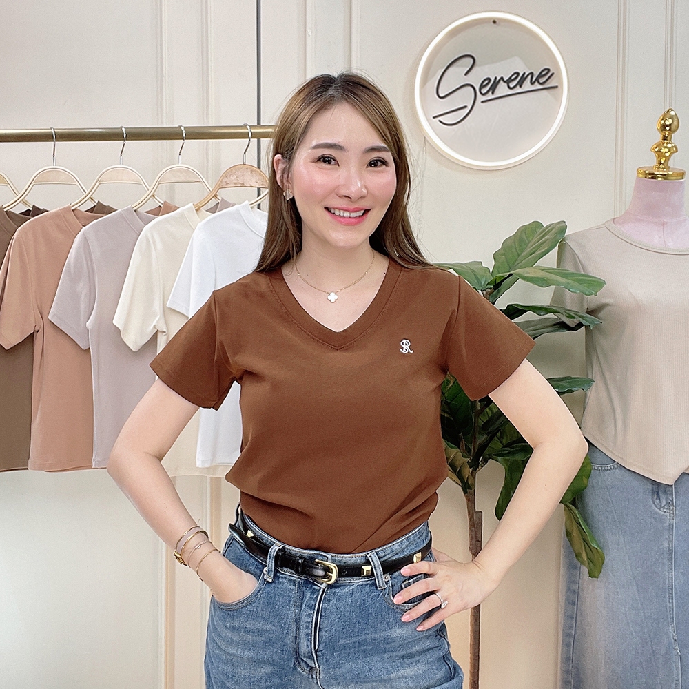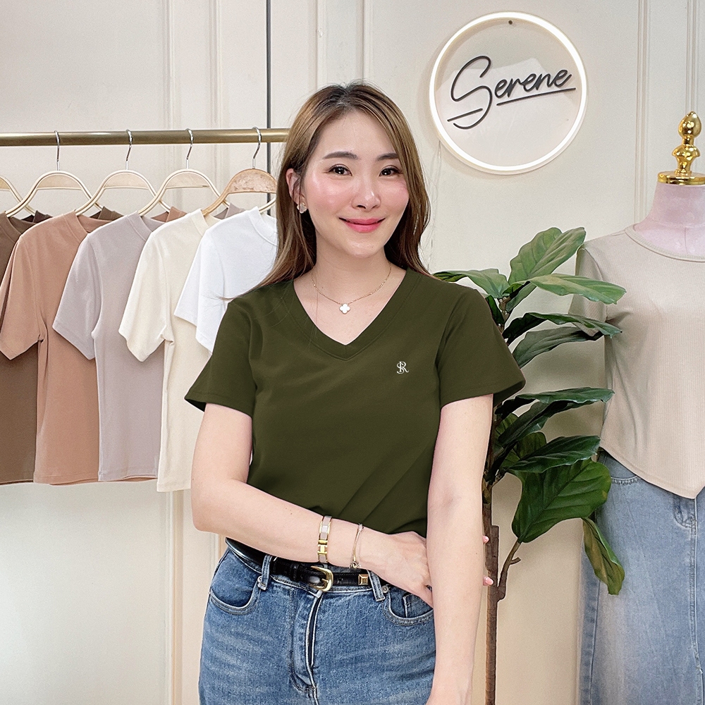 Serene's Choice V-Neck Short-Sleeved Shirt Japanese Premium Cotton Fabric Embroidered With Serene Logo Short Sleeve Baju Perempuan Baju T Shirt Perempuan