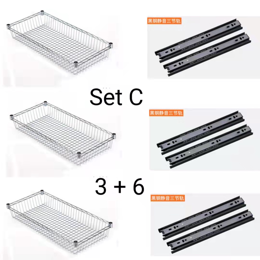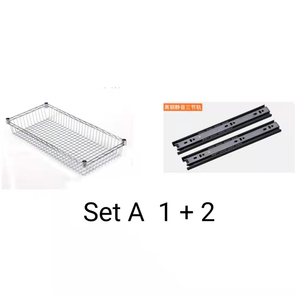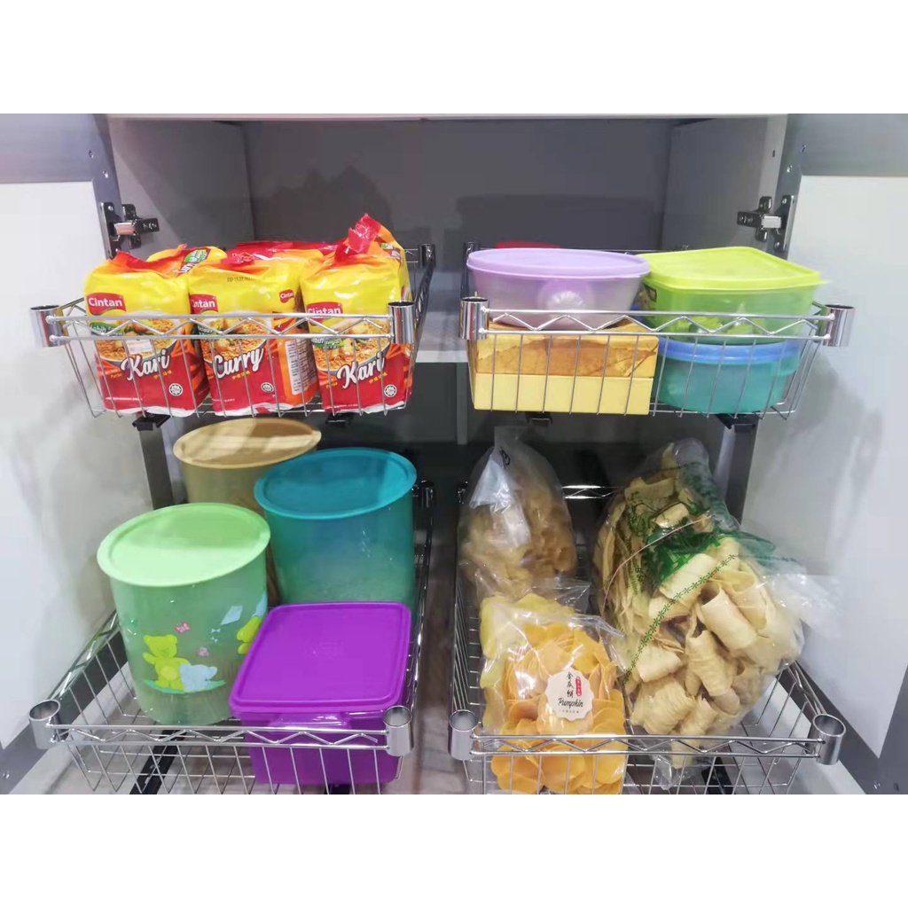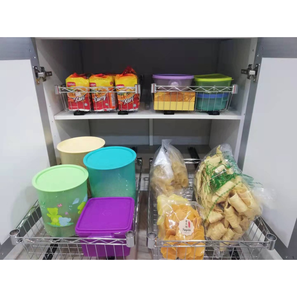 Kitchen cabinet pull out Basket Tray Rack Drawer Dish Shelf DIY Stainless steel 厨房 网篮 拉篮 抽屉篮子 diy 不锈钢